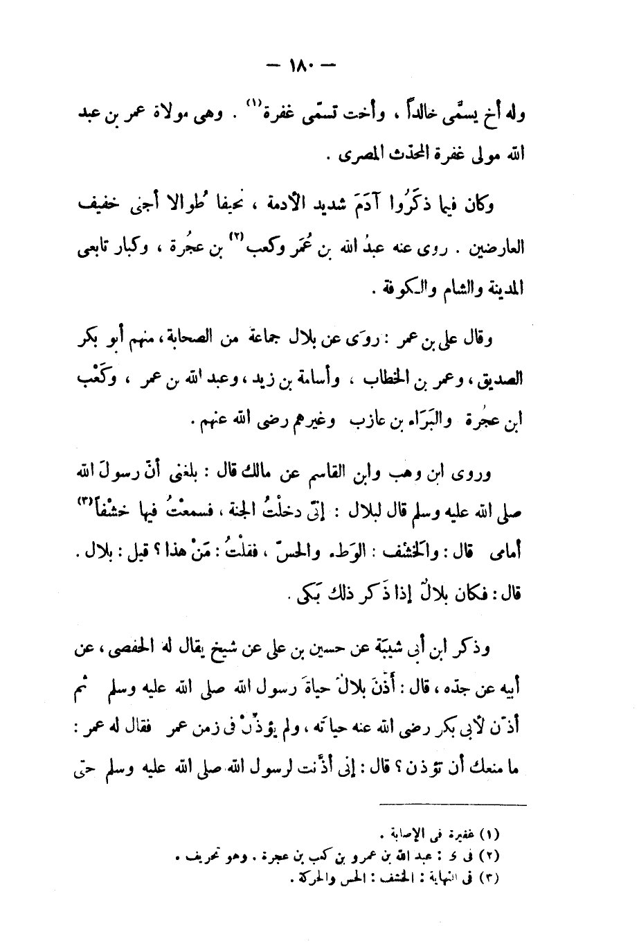 وروى ابن وهب وابن القاسم عن مالك قَالَ: بلغني أن رسول الله صَلَّى الله عليه وسلم قال لبلال: إني دخلت الجنة، فسمعت فيها خشفًا [٣] أمامي قَالَ: والخشف: الوطء والحس، فقلت: من هذا؟ قيل: بلال.