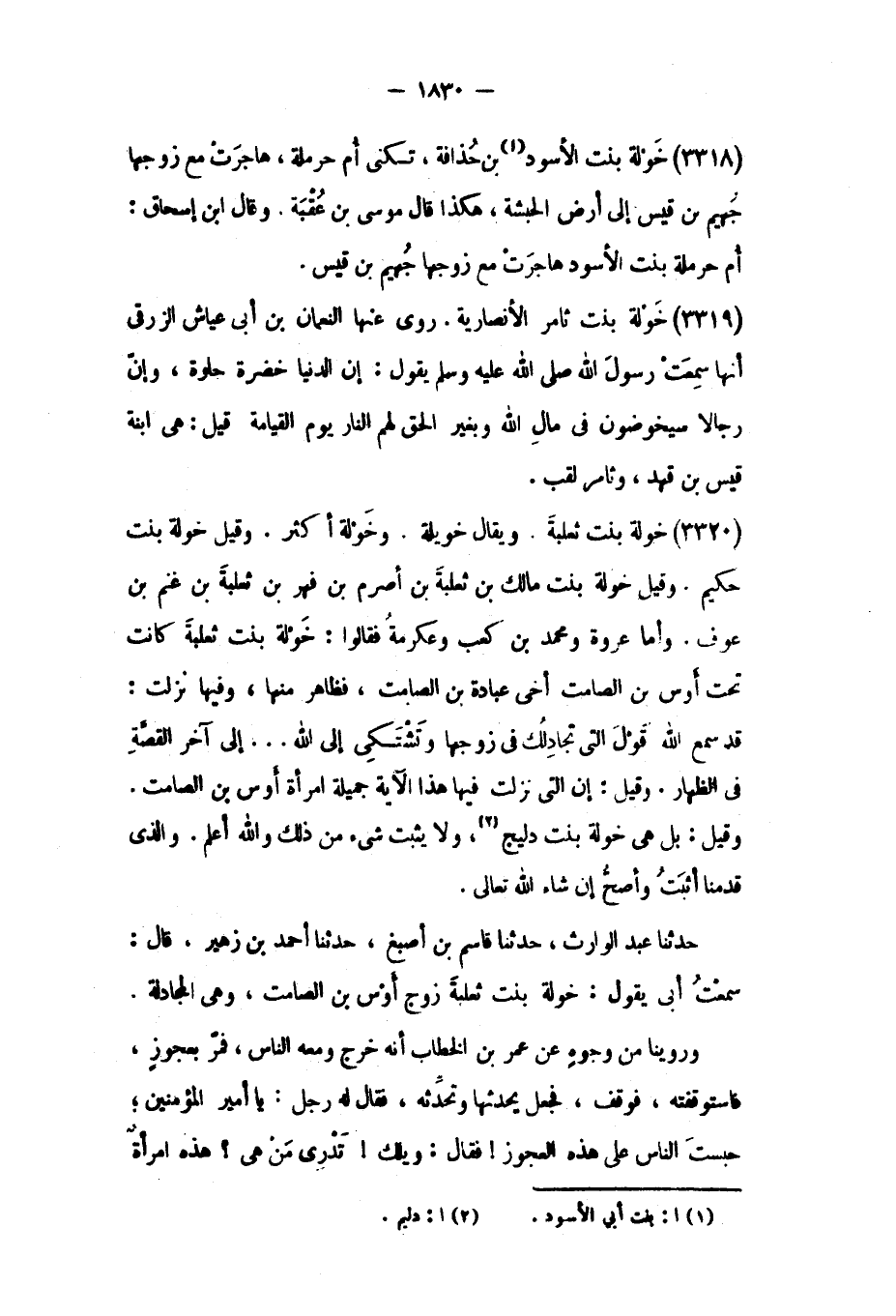(٣٣١٨) خولة بنت الأسود [١] بْن حذافة،
