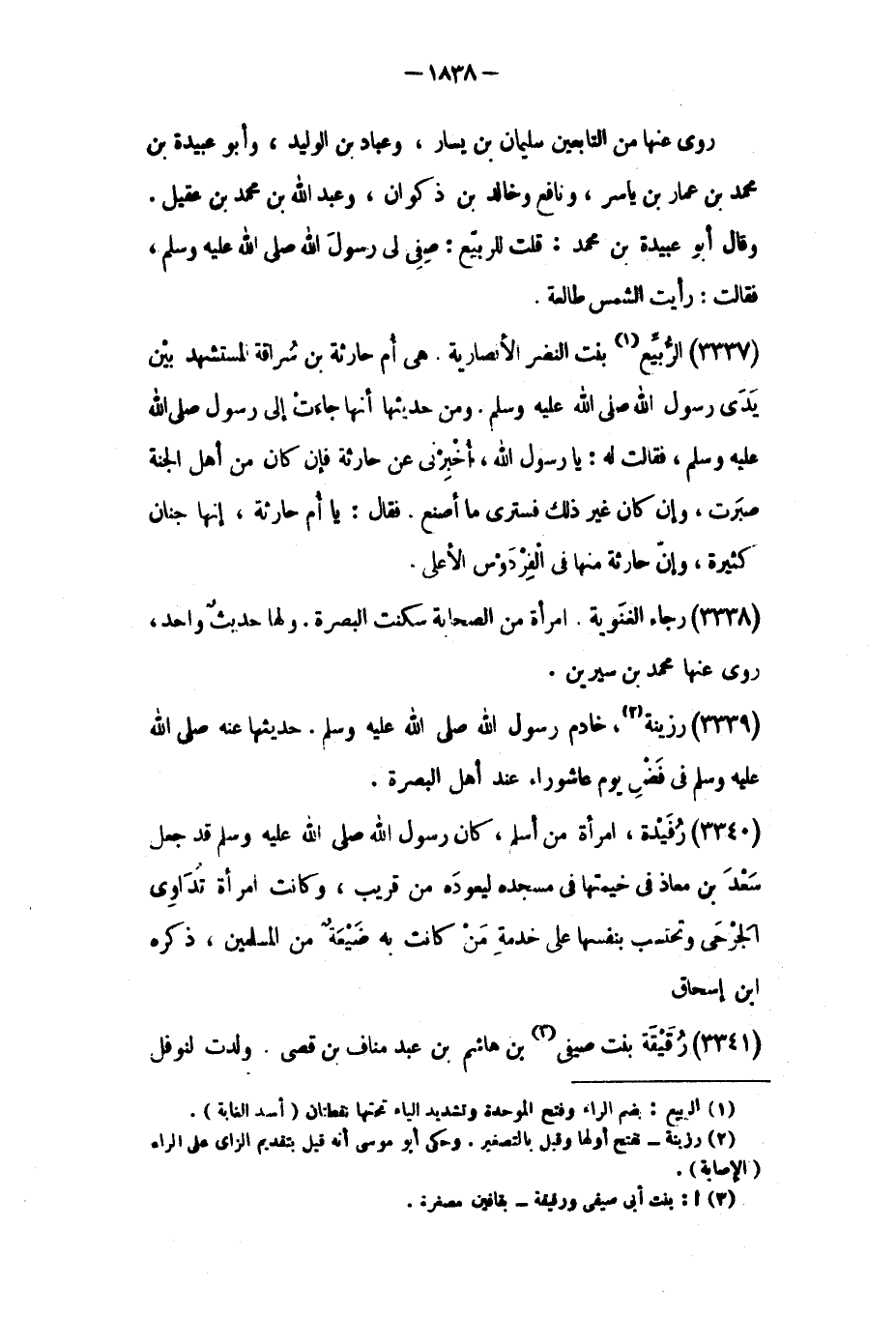 (٣٣٣٧) الربيع [١] بنت النضر الأنصارية.