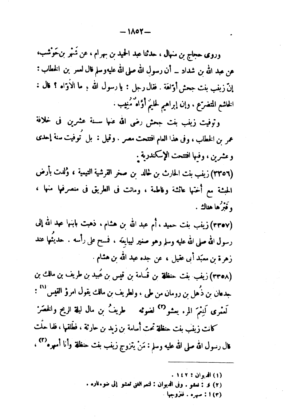 (٣٣٥٧) زينب بنت حميد، أم عَبْد اللَّهِ بْن هشام،