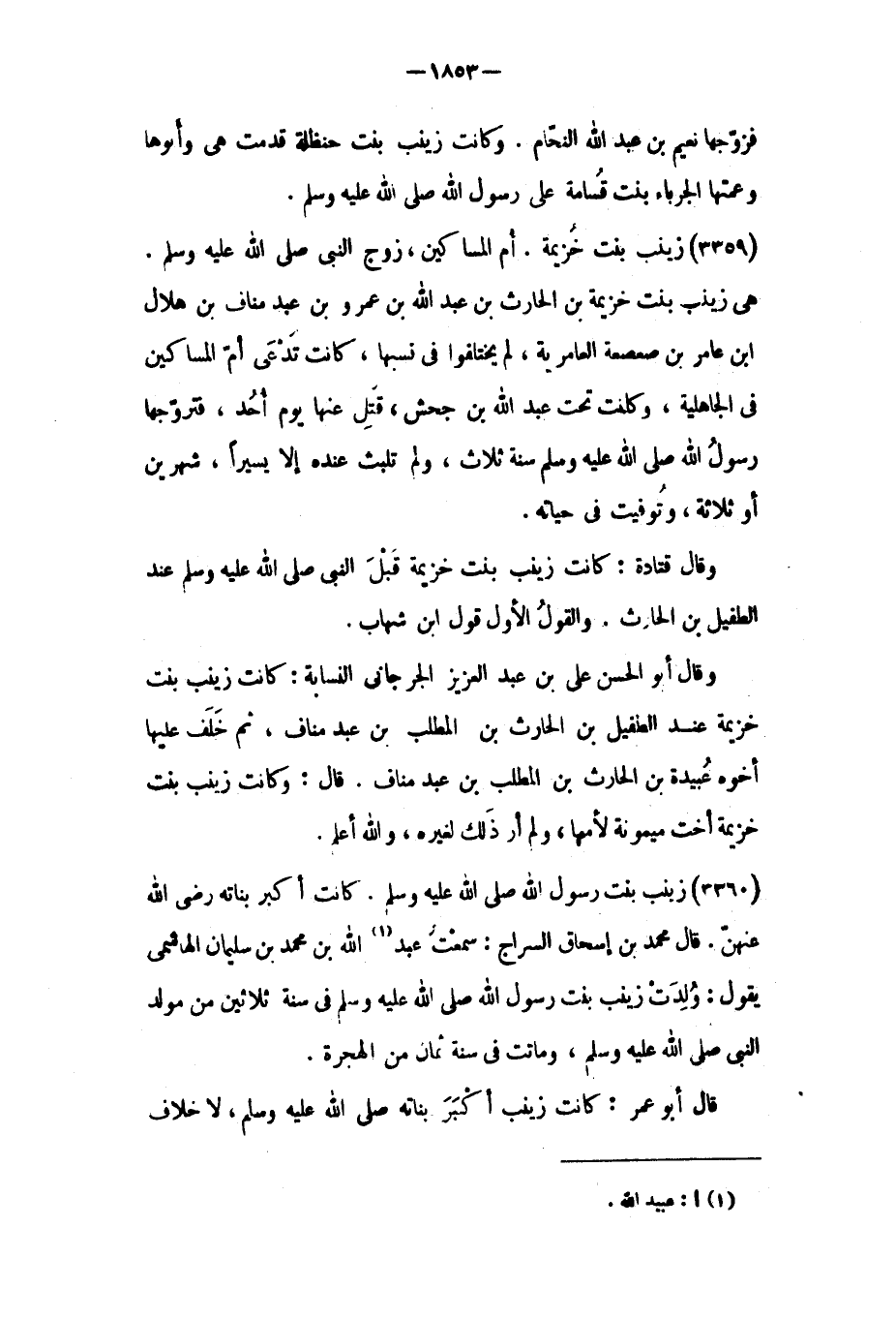 (٣٣٦٠) زينب بنت رَسُول اللَّهِ صَلَّى اللَّهُ عَلَيْهِ وَسَلَّمَ.