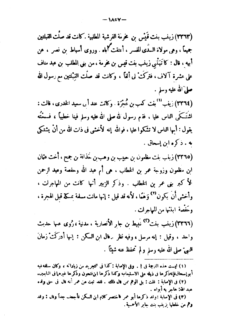 (٣٣٦٥) زينب بنت مظعون بن حبيب بن وهب بن حذافة بن جمح،