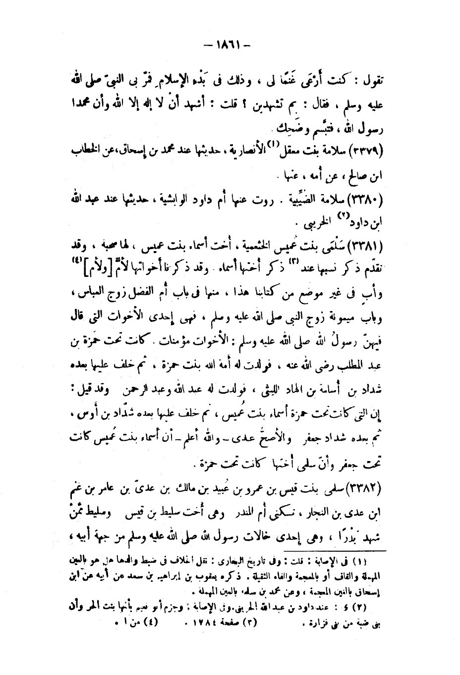 (٣٣٨٢) سلمى بنت قيس بْن عَمْرو بْن عبيد بن مالك بن عدي بن عامر بن غنم ابن عدي بن النجار،