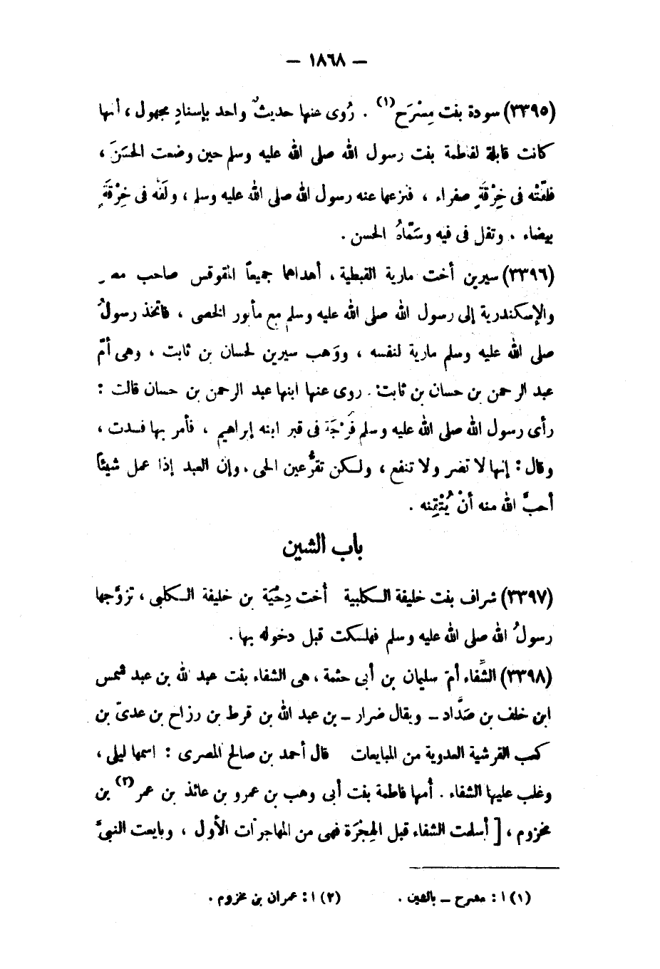 (٣٣٩٨) الشفاء أم سُلَيْمَان بْن أبي حثمة،