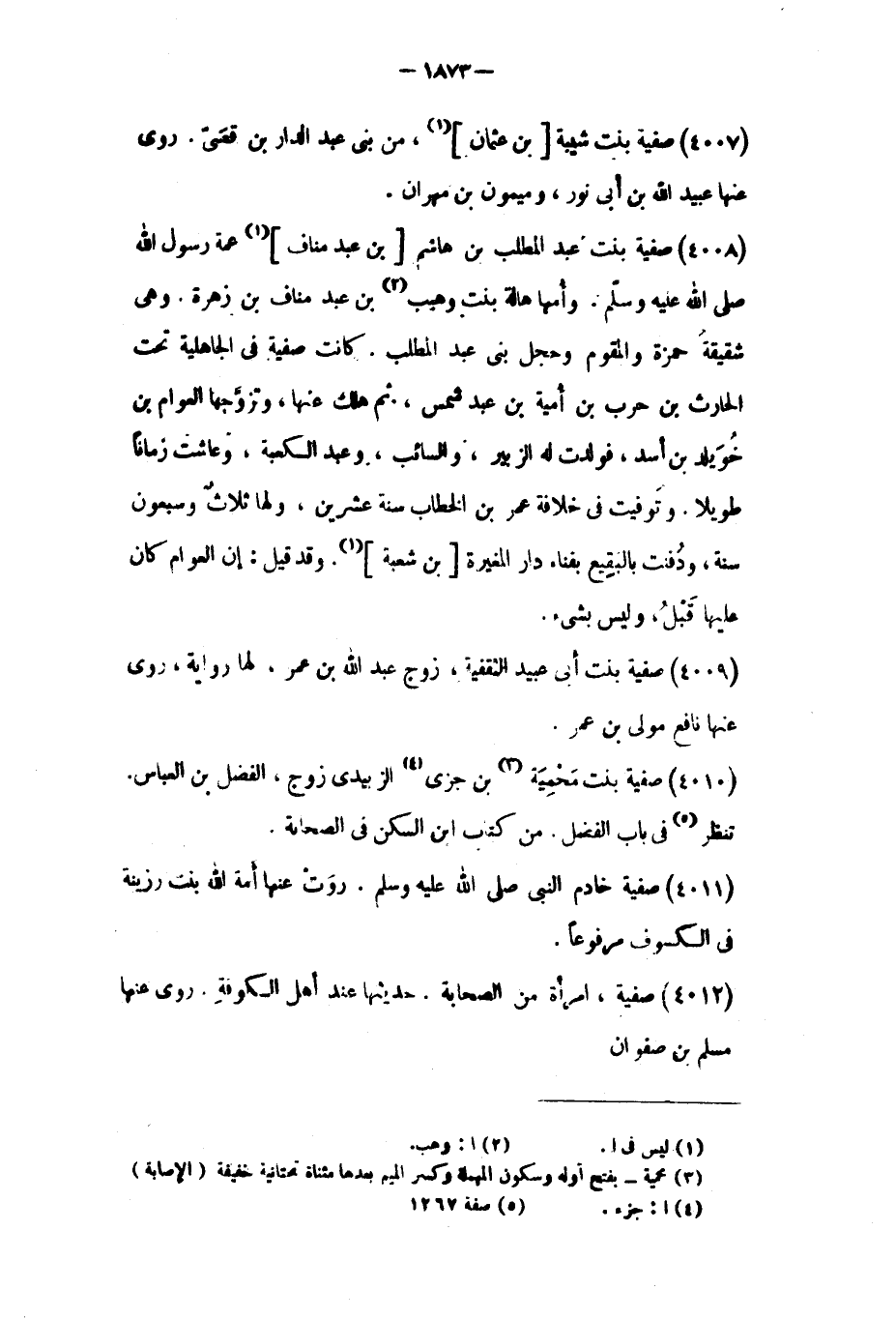 (٤٠٠٨) صفية بنت عبد المطلب بْن هاشم [بْن عبد مناف] [١]