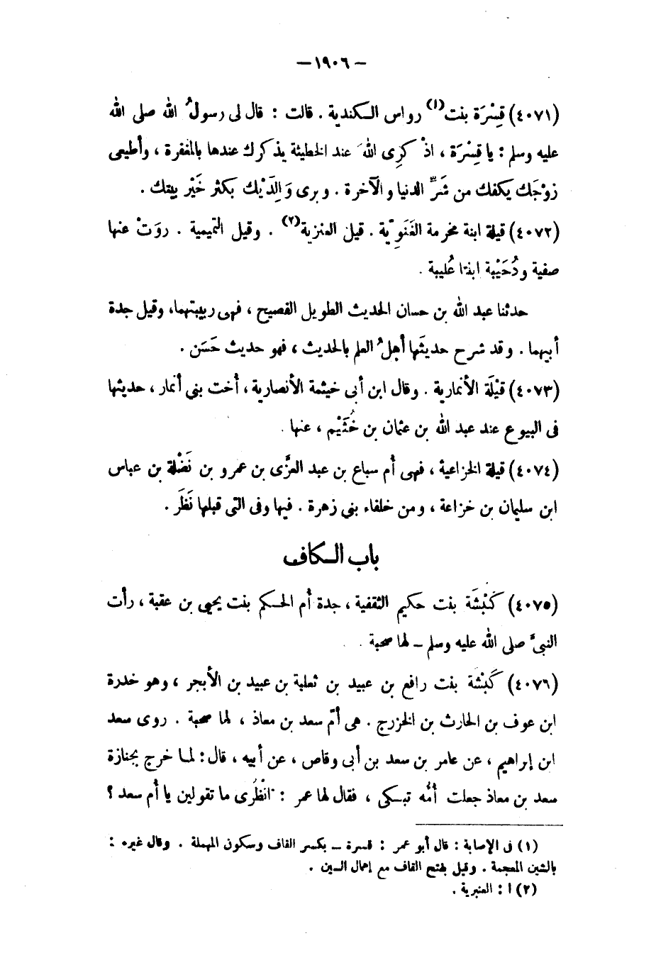 (٤٠٧٦) كبشة بنت رافع بْن عبيد بْن ثعلبة بْن عبيد بن الأبجر،