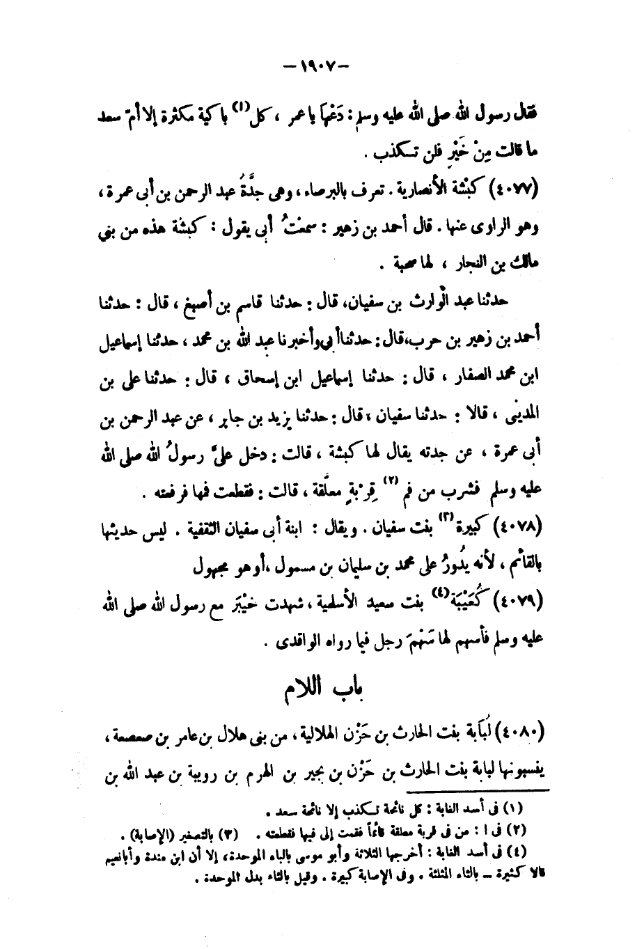 [٤] في أسد الغابة: أخرجها الثلاثة وأبو موسى بالباء الموحدة، إلا أن ابن مندة وأبا نعيم قالا كثيرة- بالثاء المثلثة. وفي الإصابة كبيرة. وقيل بالثاء بدل الموحدة.
