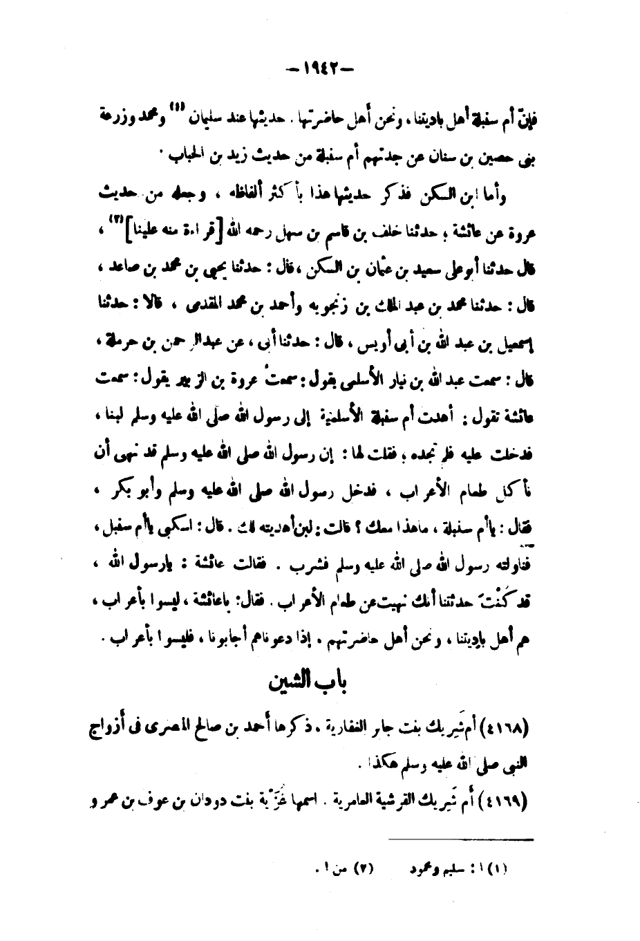 فَإِنَّ أُمَّ سُنْبُلَةَ أَهْلُ بَادِيَتِنَا، وَنَحْنُ أَهْلُ حَاضِرَتِهَا. حَدِيثُهَا عِنْدَ سُلَيْمَانَ [١] وَمُحَمَّدٍ وَزُرْعَةَ بَنِي حُصَيْنِ بْنِ سِنَانٍ عَنْ جَدَّتِهِمْ أُمِّ سُنْبُلَةِ مِنْ حَدِيثِ زَيْدِ بْنِ الْحُبَابِ.