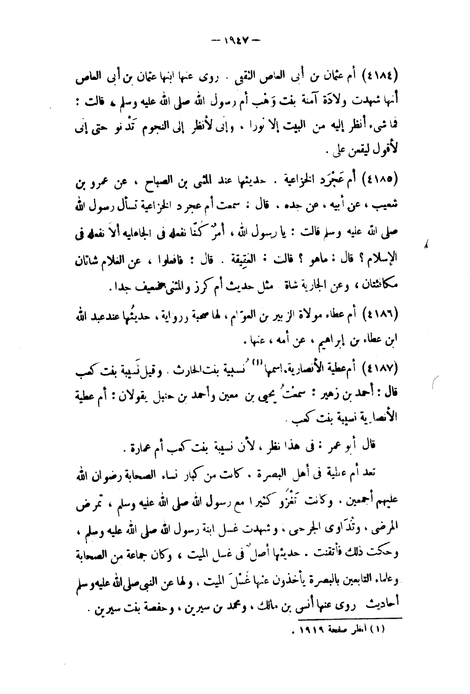 (٤١٨٤) أم عُثْمَان بْن أبي العاص الثقفي.