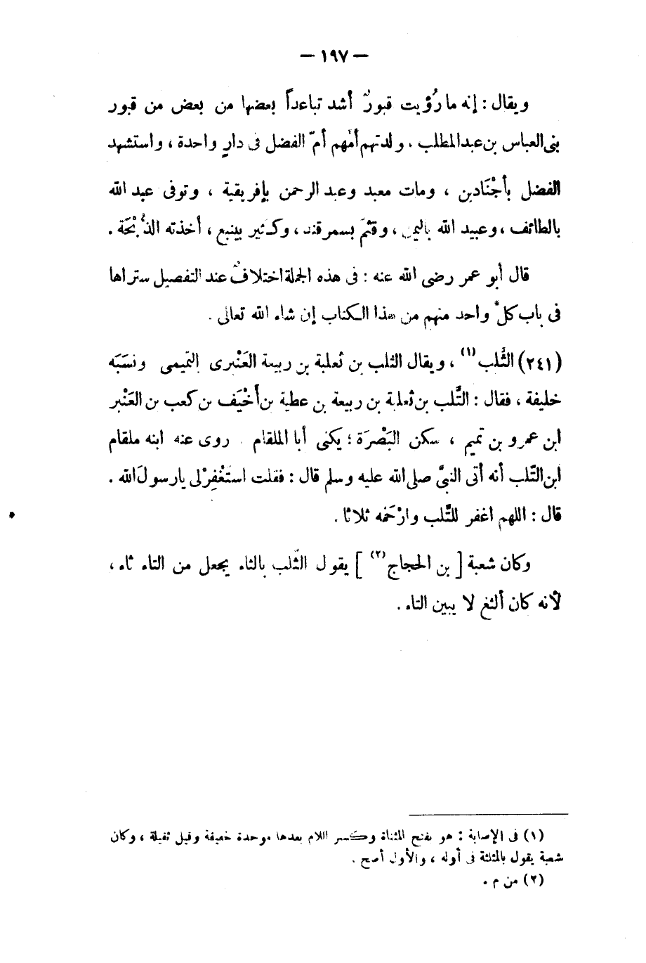 [١] في الإصابة: هو بفتح المثناة وكسر اللام بعدها موحدة خفيفة وقيل ثقيلة، وكان شعبة يقول بالمثلثة في أوله، والأول أصبح.