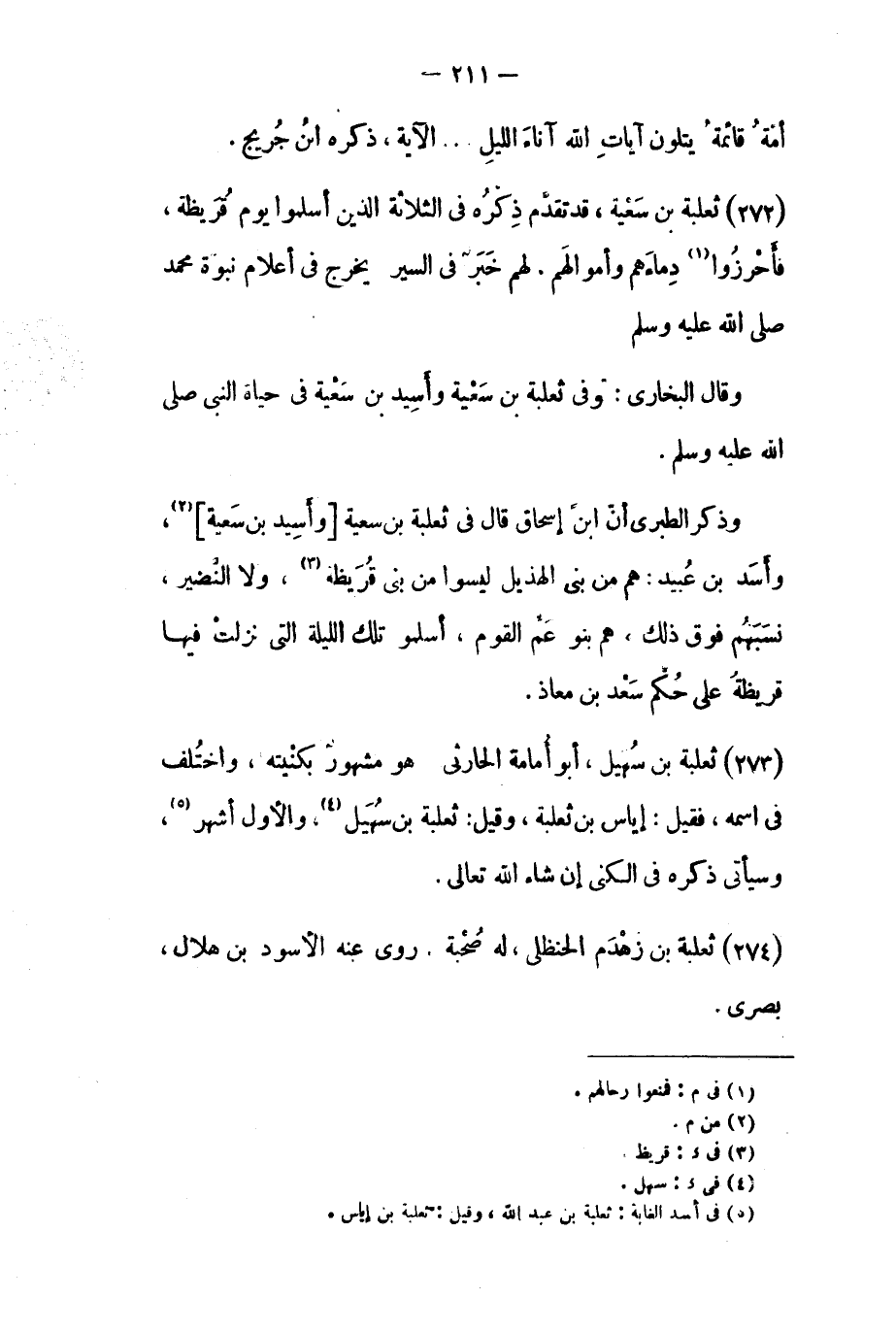 [٥] في أسد الغابة: ثعلبة بن عبد الله، وقيل: ثعلبة بن إياس.