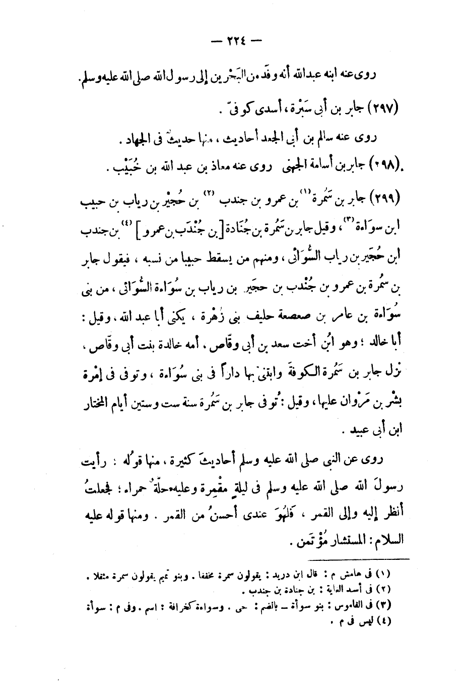 (٢٩٩) جابر بن سمرة [١] بن عمرو بن جندب [٢] بن حجير بن رياب بن حبيب ابن سواءة [٣] ،
