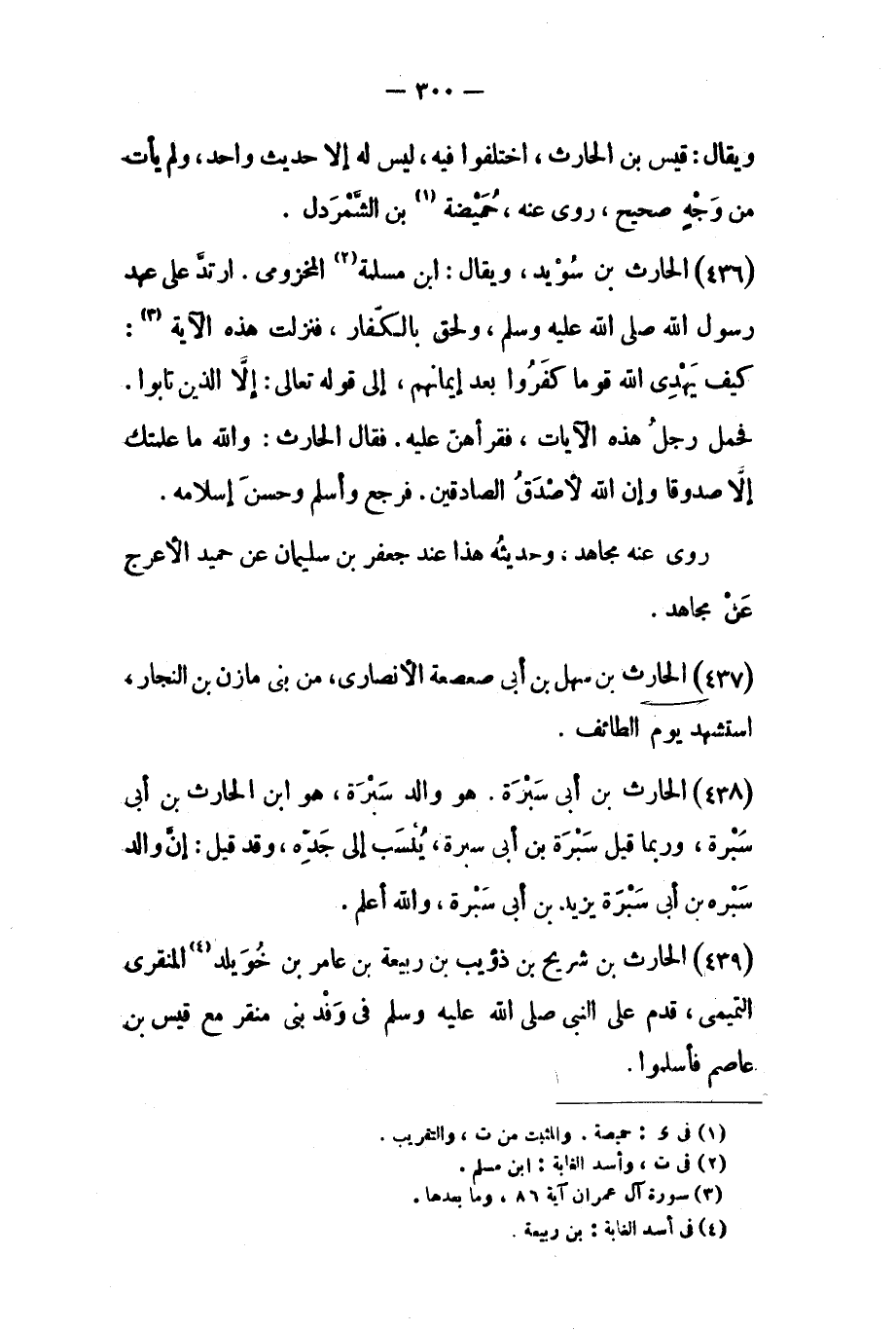 كَيْفَ يَهْدِي الله قَوْماً كَفَرُوا بَعْدَ إِيمانِهِمْ ٣: ٨٦، إلى قوله تعالى: إِلَّا الَّذِينَ تابُوا. ٣: ٨٩ فحمل رجل هذه الآيات، فقرأهن عليه. فقال الحارث: والله ما علمتك إلا صدوقًا وإن الله لأصدق الصادقين. فرجع وأسلم وحسن إسلامه.