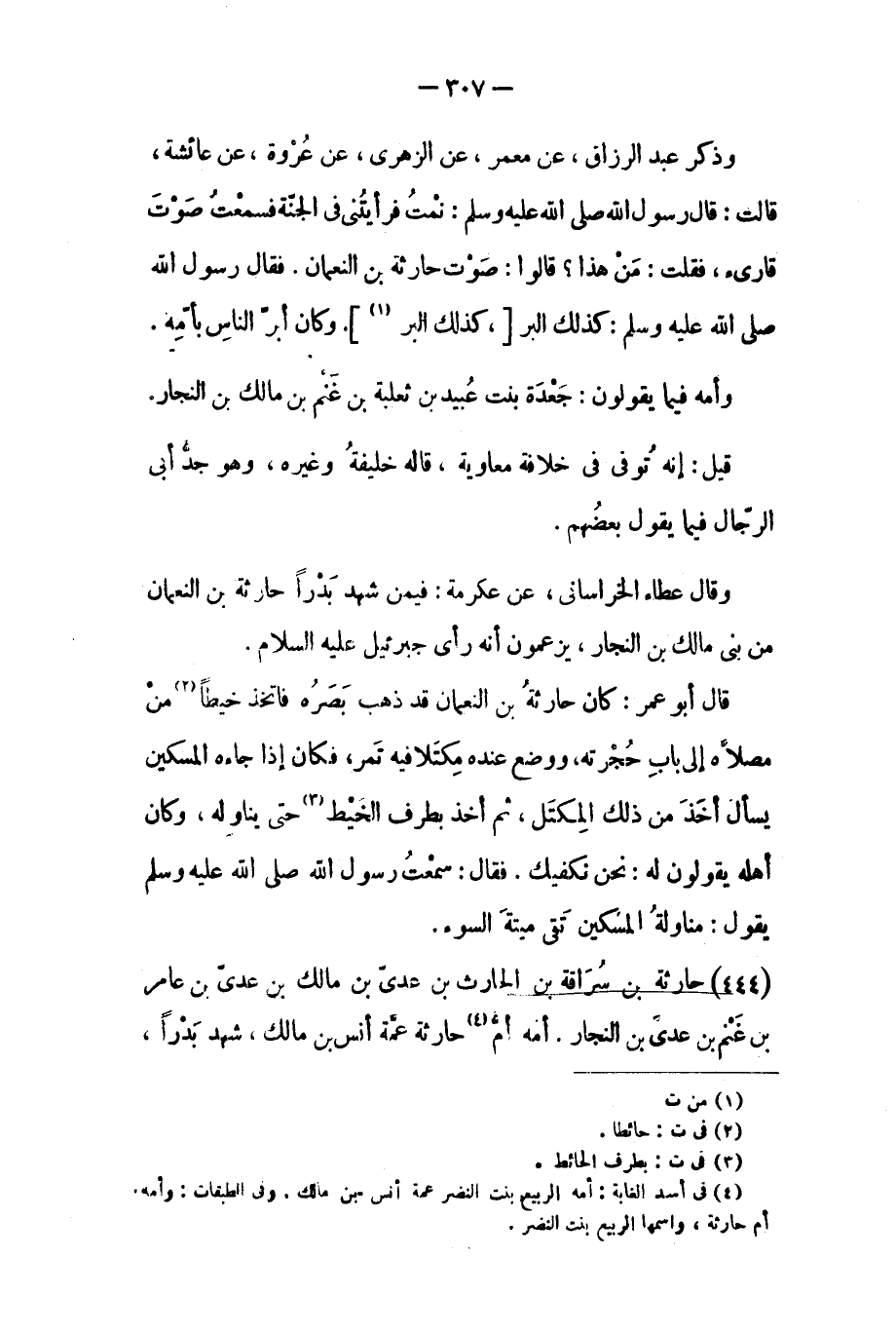 (٤٤٤) حارثة بن سراقة بن الحارث بن عدي بن مالك بن عدي بن عامر بن غنم بن عدي بن النجار.