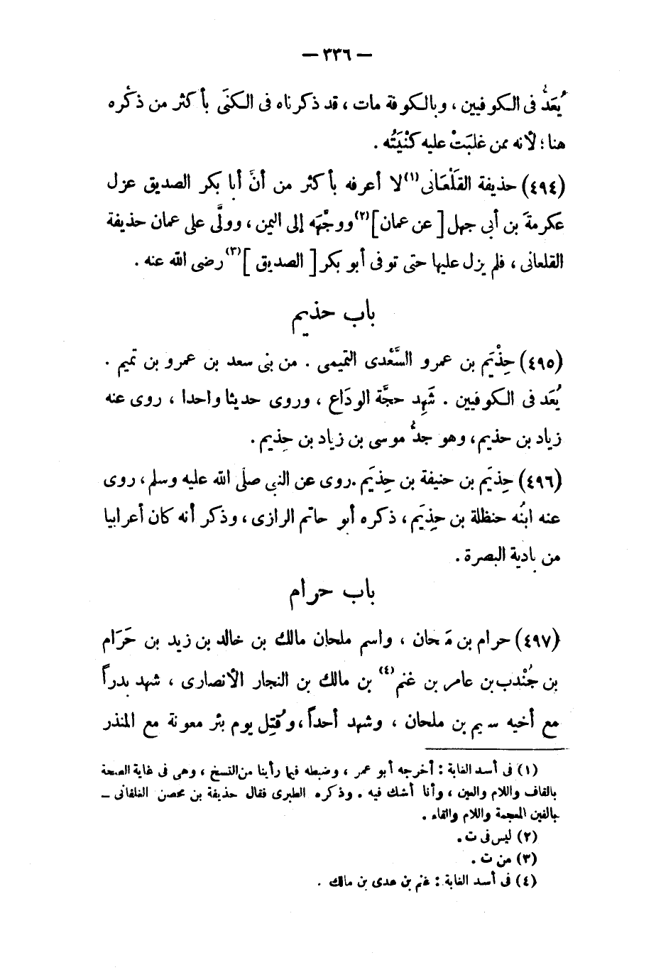 [١] في أسد الغابة: أخرجه أبو عمر، وضبطه فيما رأينا من النسخ، وهي في غاية الصحة بالقاف واللام والعين، وأنا أشك فيه. وذكره الطبري فقال حذيفة بن محصن الغلفانى- بالغين المعجمة واللام والفاء.