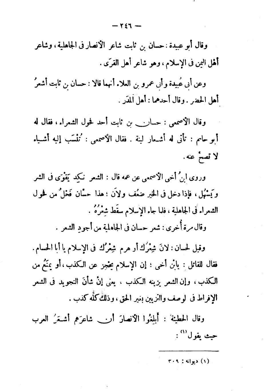 وقال مرة أخرى: شعر حسان في الجاهلية من أجود الشعر.