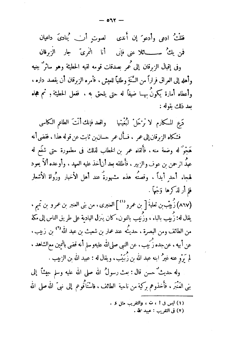(٨٦٧) زبيب بن ثعلبة [بن عمرو [١]] العنبري،