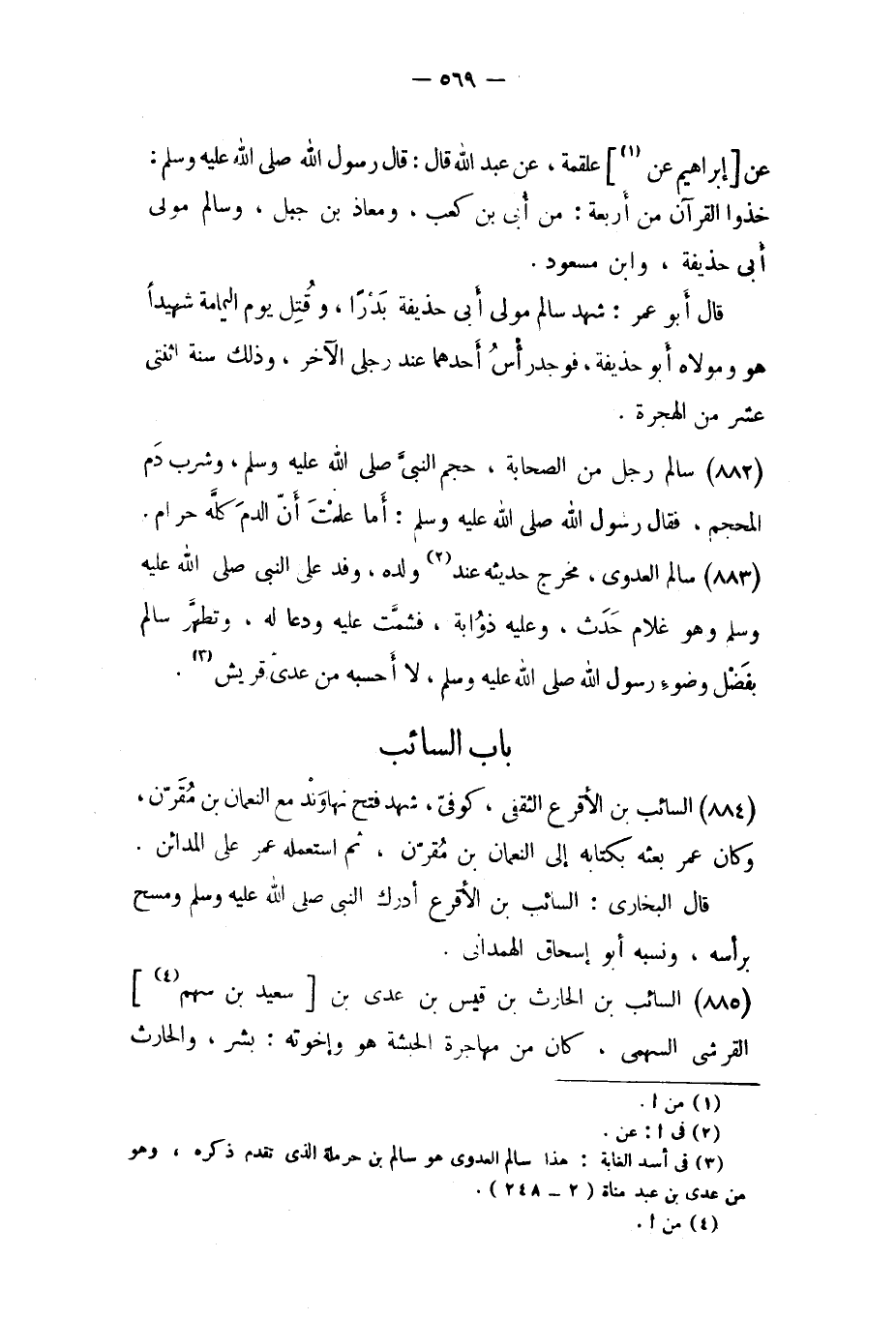 [٣] في أسد الغابة: هذا سالم العدوي هو سالم بن حرملة الّذي تقدم ذكره، وهو من عدي بن عبد مناة (٢- ٢٤٨) .