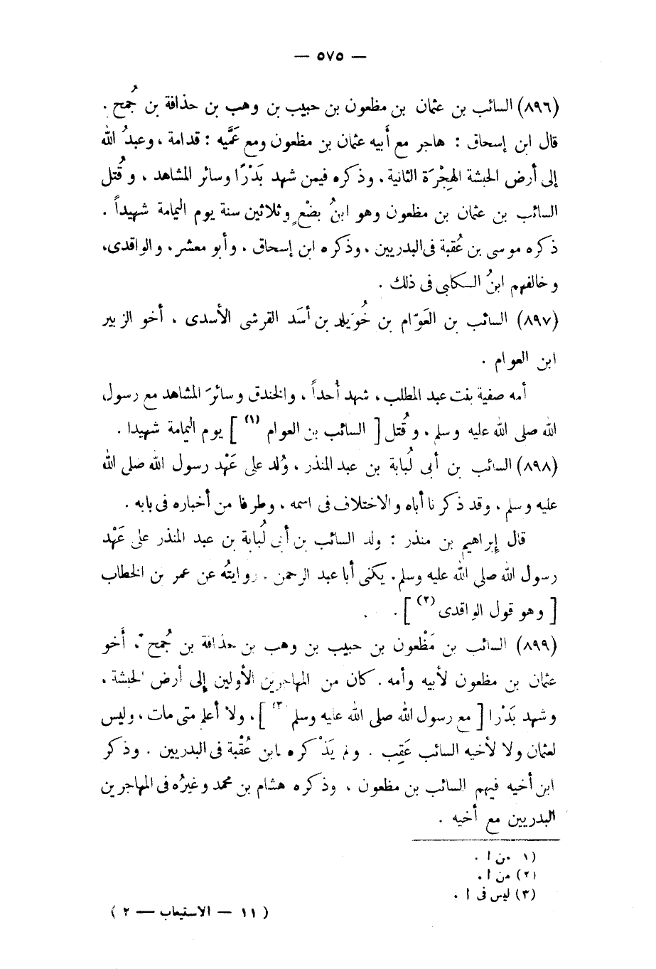 (٨٩٦) السائب بن عثمان بن مظعون بن حبيب بن وهب بن حذافة بن جمح.