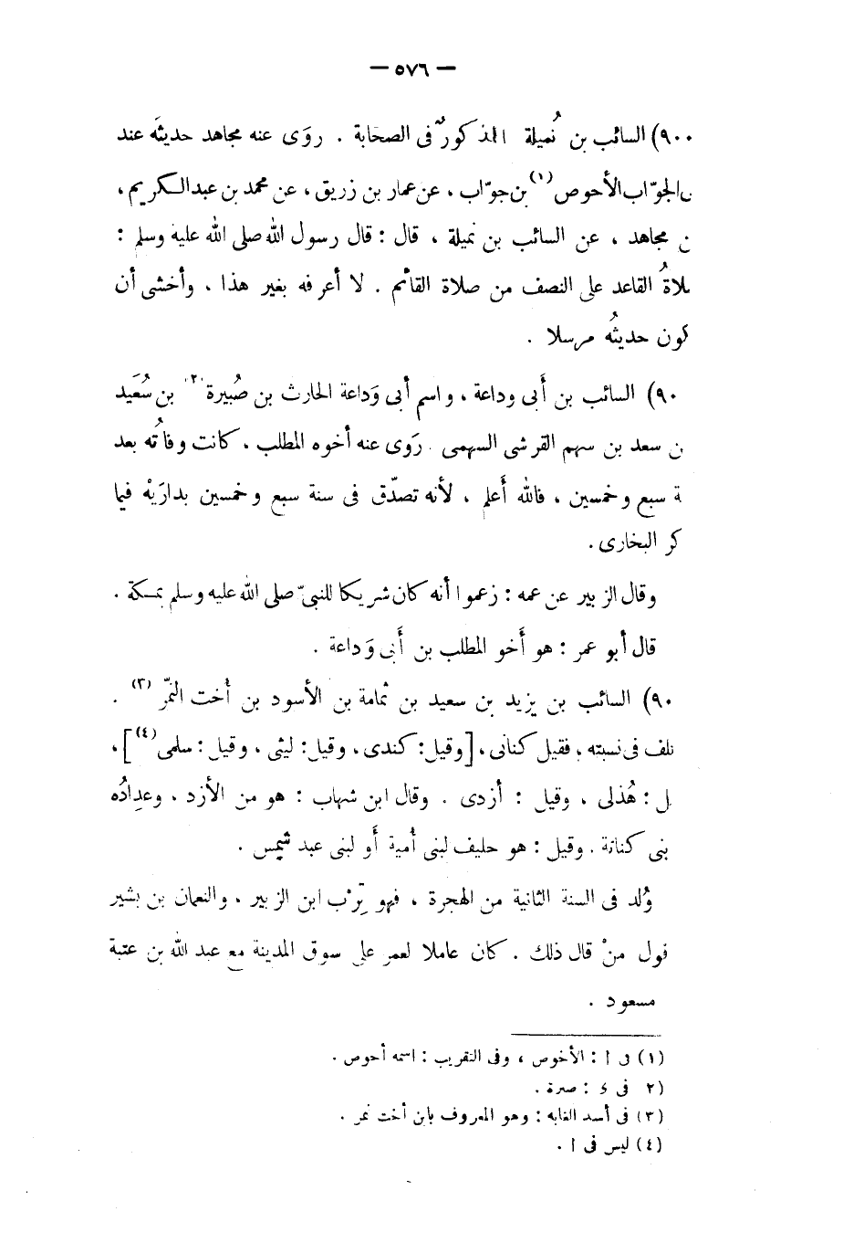 (٩٠٢) السائب بن يزيد بن سعيد بن ثمامة بن الأسود بن أخت النّمر [٣] .