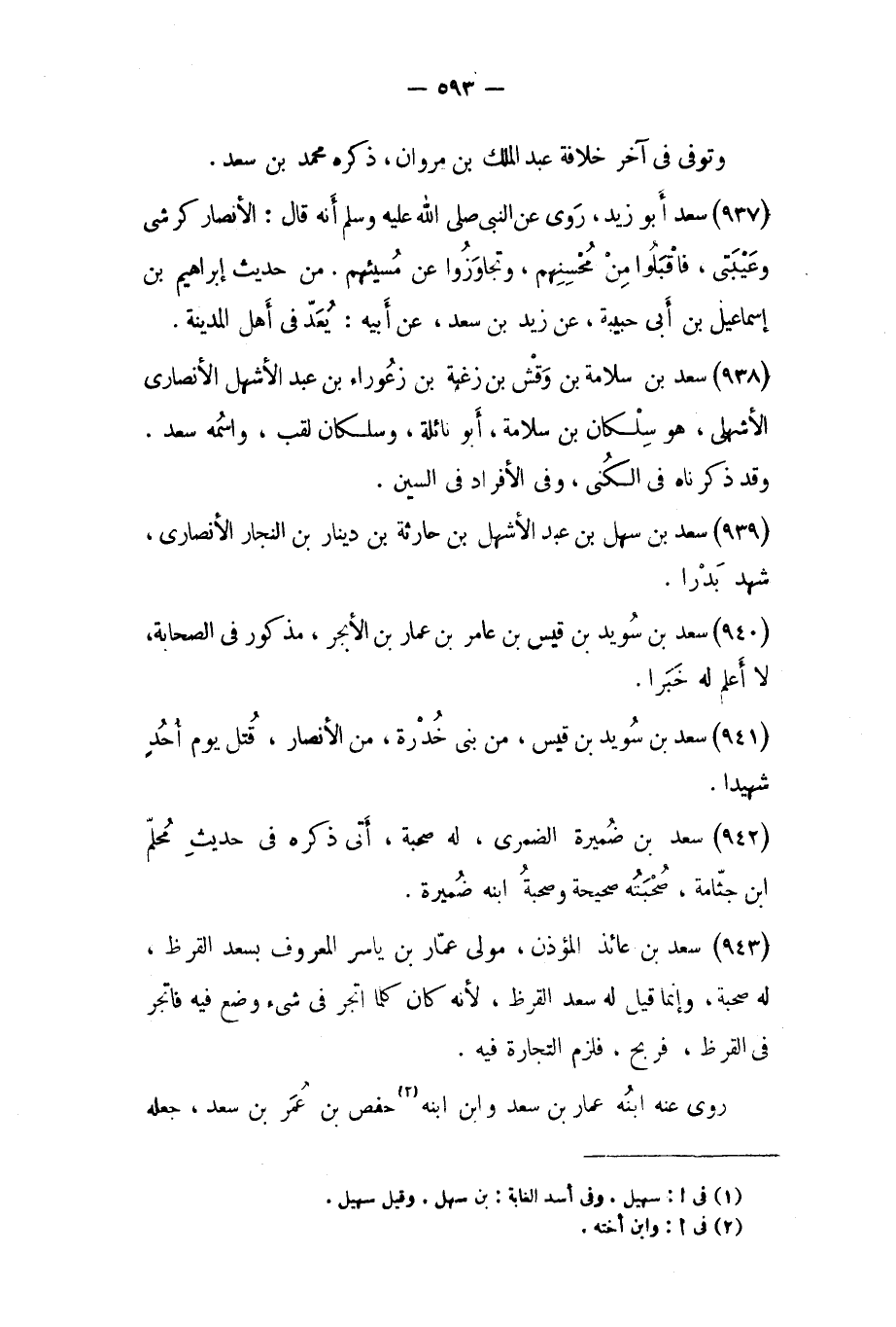 (٩٣٩) سعد بن سهل [١] بن عبد الأشهل بن حارثة بن دينار بن النجار الأنصاري،