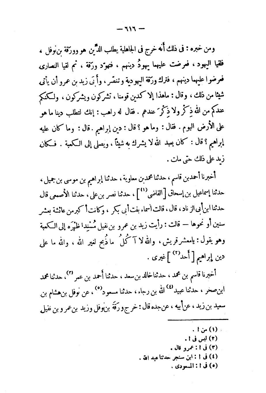أخبرنا قاسم بن محمد، حدثنا خالد بن سعد، حدثنا أحمد بن عمر [٣] ، حدثنا محمد ابن صخر، حَدَّثَنَا عبيد [٤] الله بن رجاء، حَدَّثَنَا مسعود [٥] ، عن نوفل بن هشام بن سعيد بن زيد، عَنْ أَبِيهِ، عَنْ جَدِّهِ قَالَ: خرج ورقة بن نوفل وزيد بن عمرو بن نفيل
