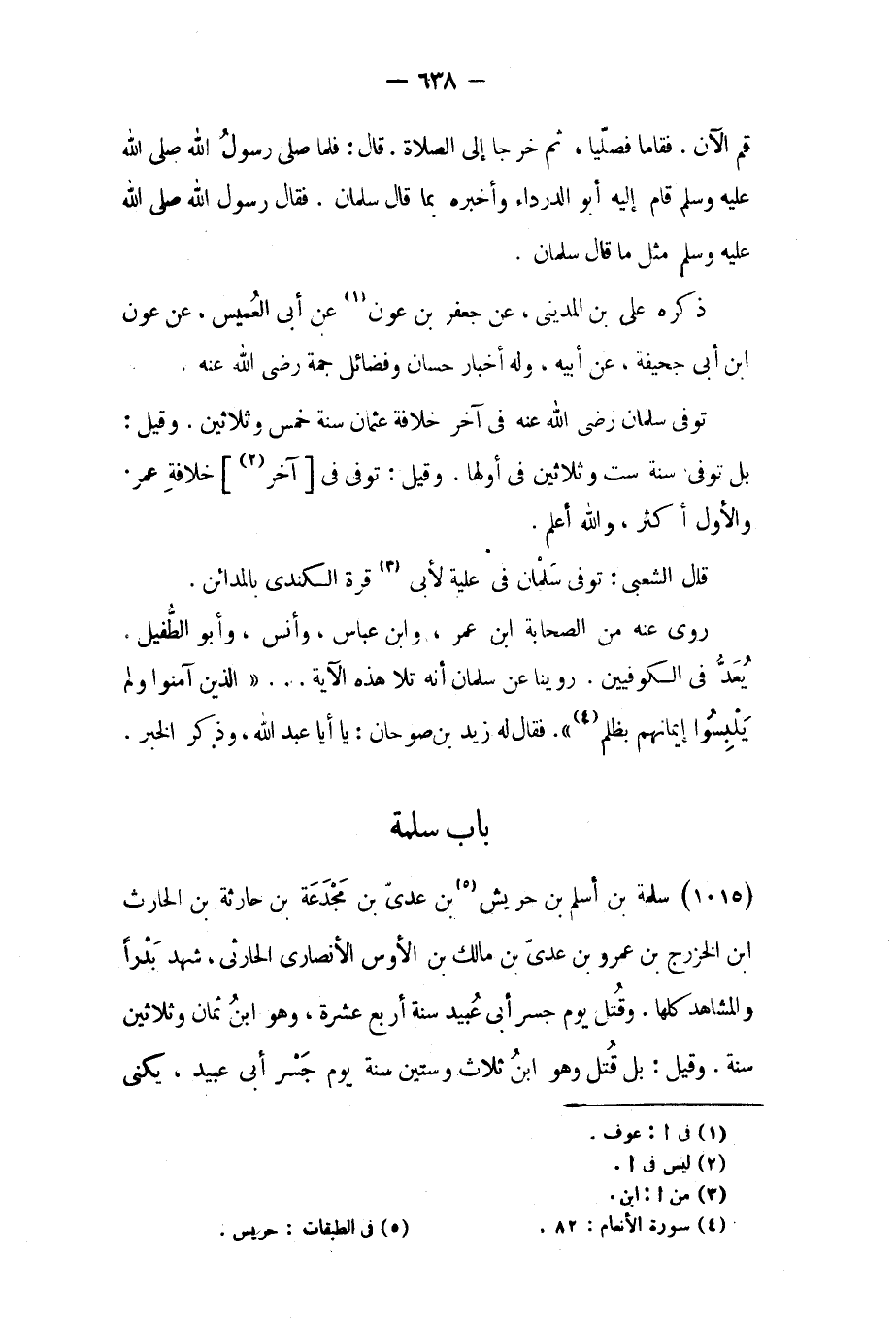 يعد في الكوفيين. روينا عن سلمان أنه تلا هذه الآية ... «الَّذِينَ آمَنُوا وَلَمْ يَلْبِسُوا إِيمانَهُمْ بِظُلْمٍ [٤] » . ٦: ٨٢ فَقَالَ له زيد بن صوحان: يا أبا عبد الله، وذكر الخبر.