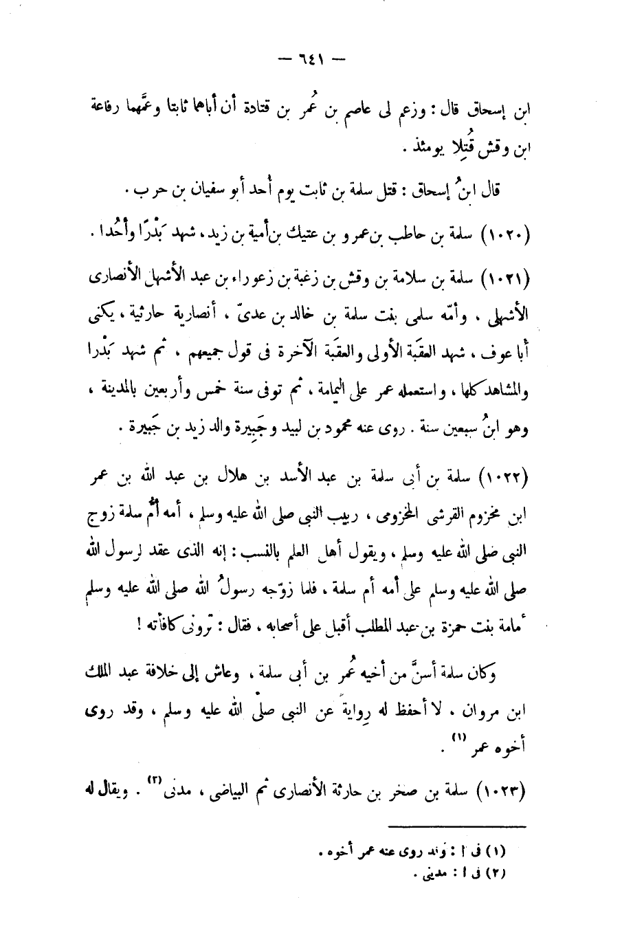 (١٠٢٢) سلمة بن أبي سلمة بن عبد الأسد بن هلال بن عبد الله بن عمر ابن مخزوم القرشي المخزومي،