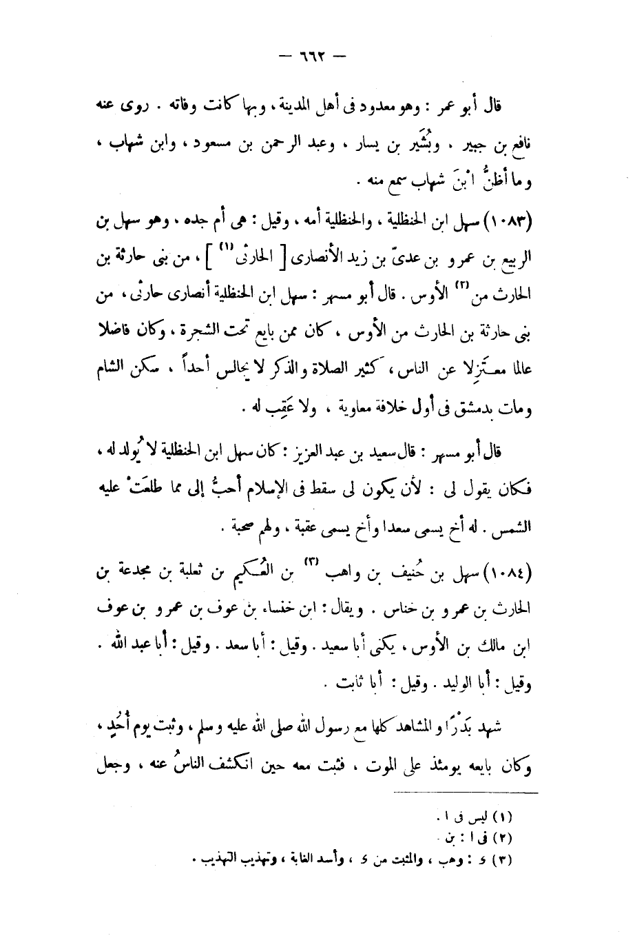 (١٠٨٤) سهل بن حنيف بن واهب [٣] بن العكيم بن ثعلبة بن مجدعة بن الحارث بن عمرو بن خناس.