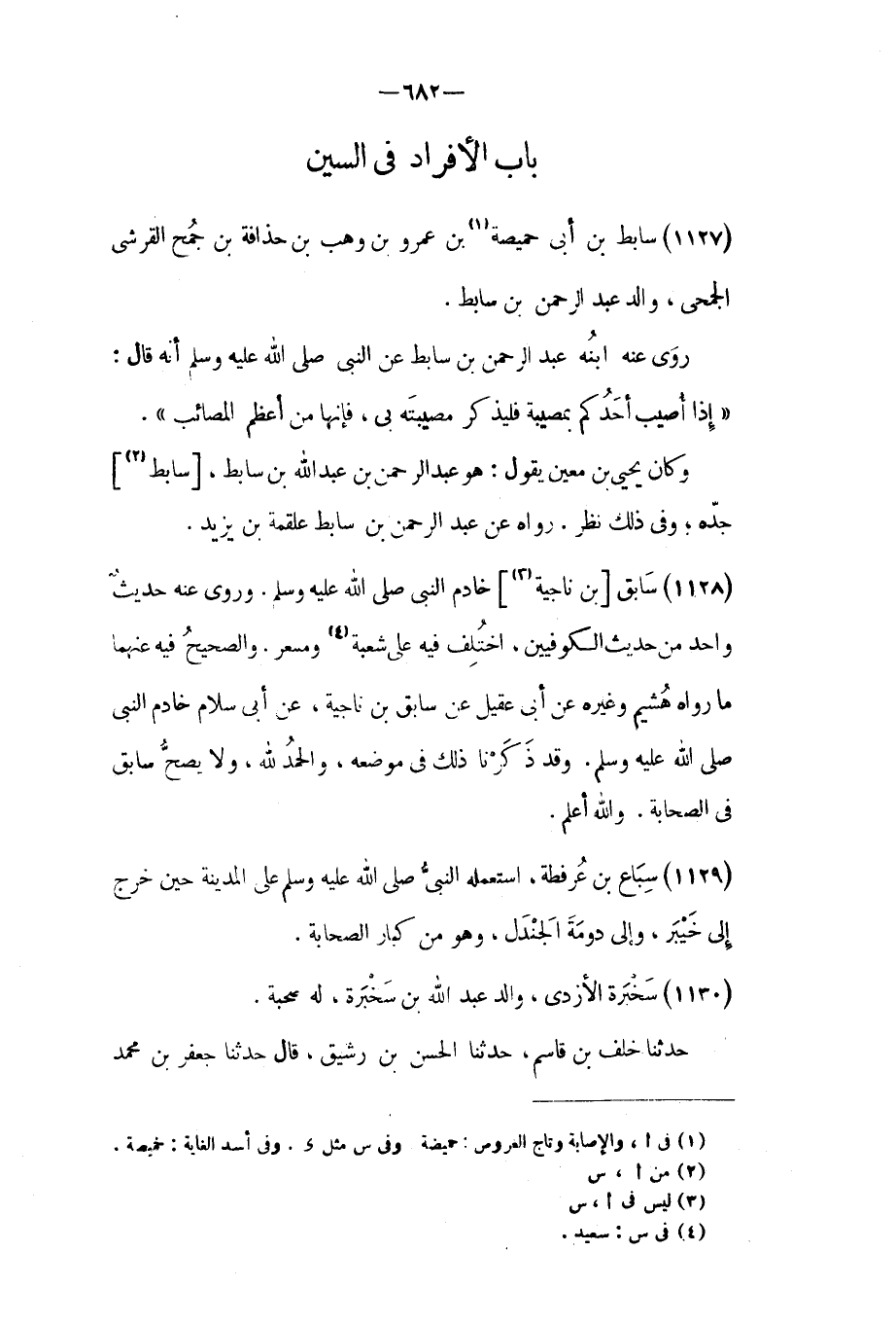 (١١٢٧) سابط بن أبي حميصة [١] بن عمرو بن وهب بن حذافة بن جمح القرشي الجمحي،