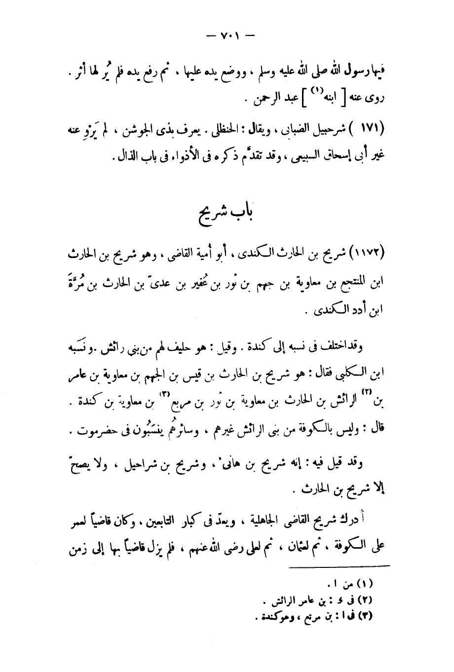 وقد اختلف في نسبه إلى كندة. وقيل: هو حليف لهم من بني رائش. ونسبه ابن الكلبي فَقَالَ: هو شريح بن الحارث بن قيس بن الجهم بن معاوية بن عامر بن [٢] الرائش بن الحارث بن معاوية بن ثور بن مربع [٣] بن معاوية بن كندة.