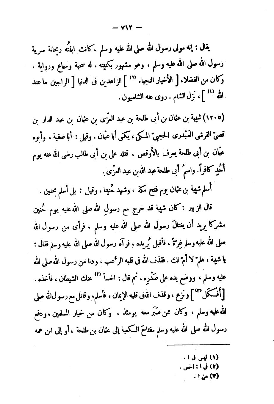 (١٢٠٥) شيبة بن عثمان بن أبي طلحة بن عبد العزى بن عثمان بن عبد الدار بن قصي القرشي العبدري الحجبي المكي،