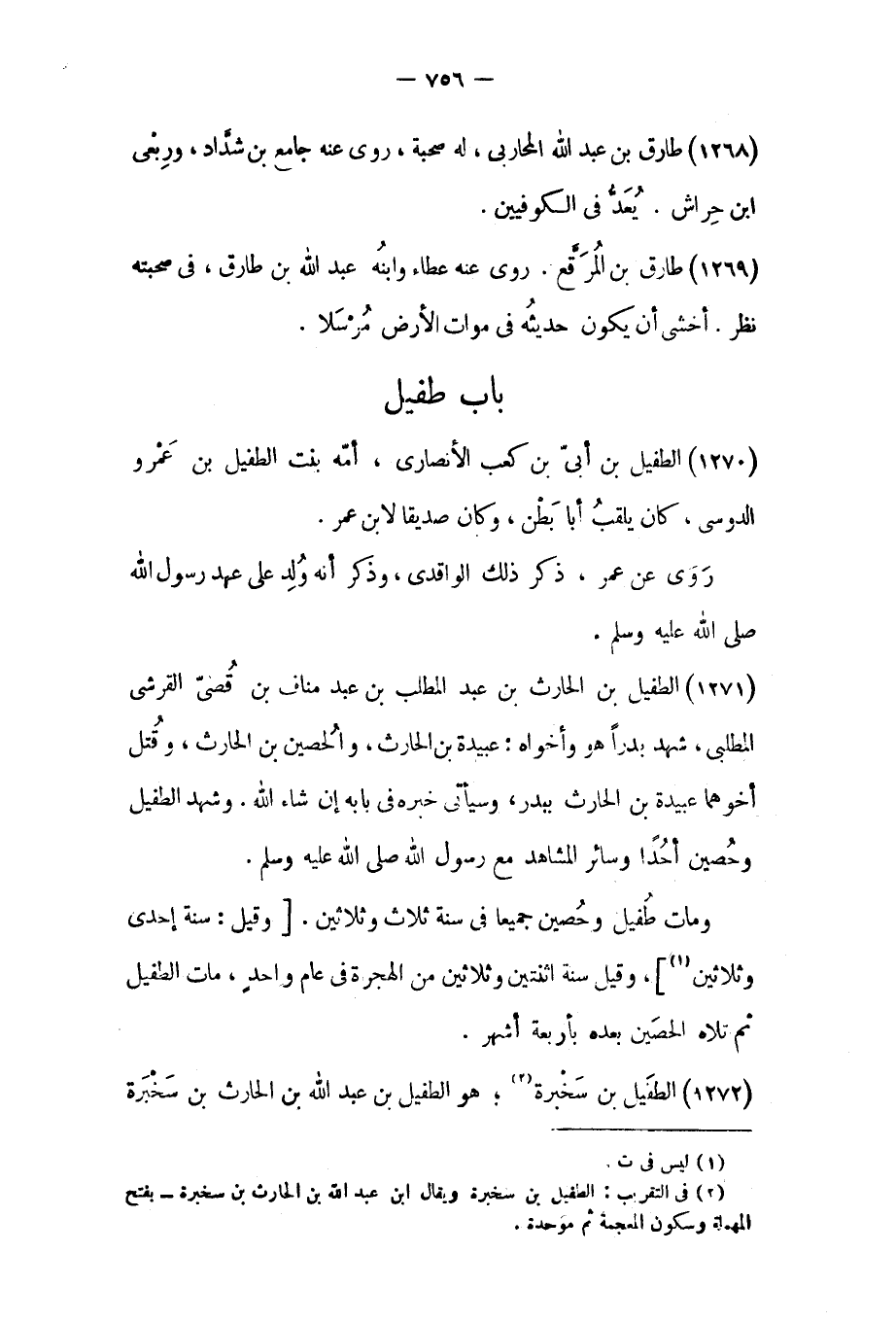 (١٢٧٢) الطفيل بن سخبرة [٢] ، هو الطفيل بن عبد الله بن الحارث بن سخبرة القرشي.