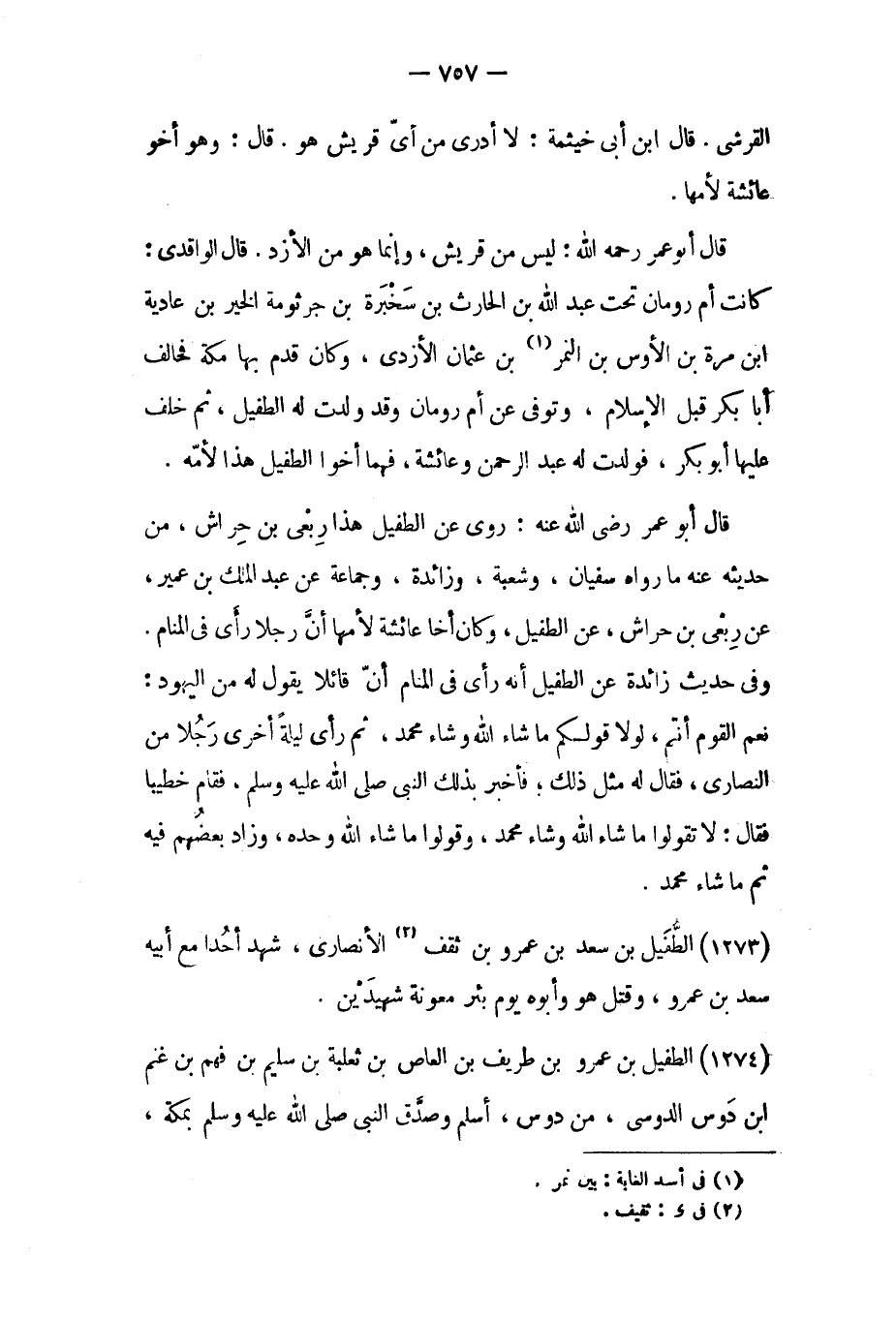 (١٢٧٤) الطفيل بن عمرو بن طريف بن العاص بن ثعلبة بن سليم بن فهم بن غنم ابن دوس الدوسي،