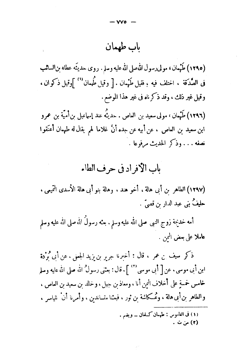 (١٢٩٦) طهمان، مولى سعيد بن العاص.