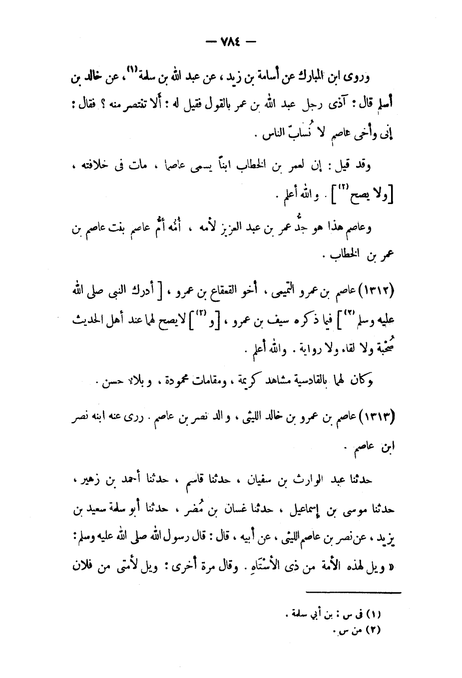 (١٣١٣) عاصم بن عمرو بن خالد الليثي،