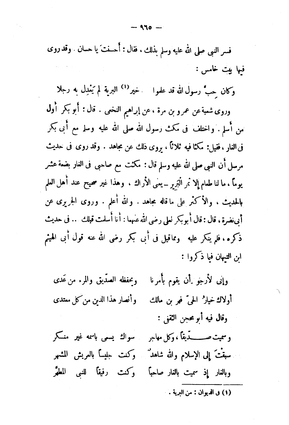 وبالغار إذ سميت بالغار صاحبا ... وكنت رفيقا للنّبيّ المطهّر
