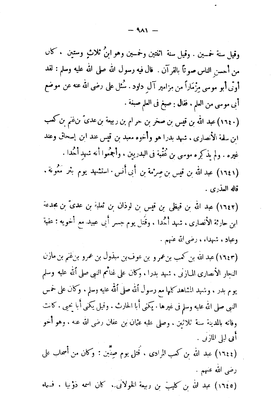 (١٦٤٣) عبد الله بْن كَعْب بن عمرو بن عوف بن مبذول بن عَمْرو بْن غنم بْن مازن النجار الأَنْصَارِيّ المازني،