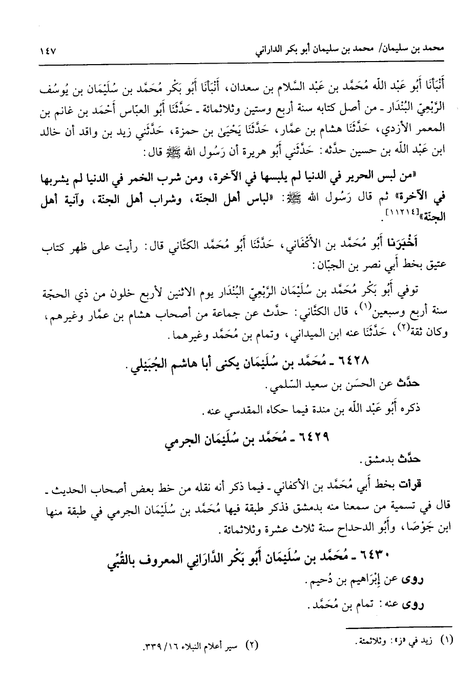 6430 - محمد بن سليمان أبو بكر الداراني المعروف بالقبي روى عن إبراهيم بن دحيم روى عنه تمام بن محمد