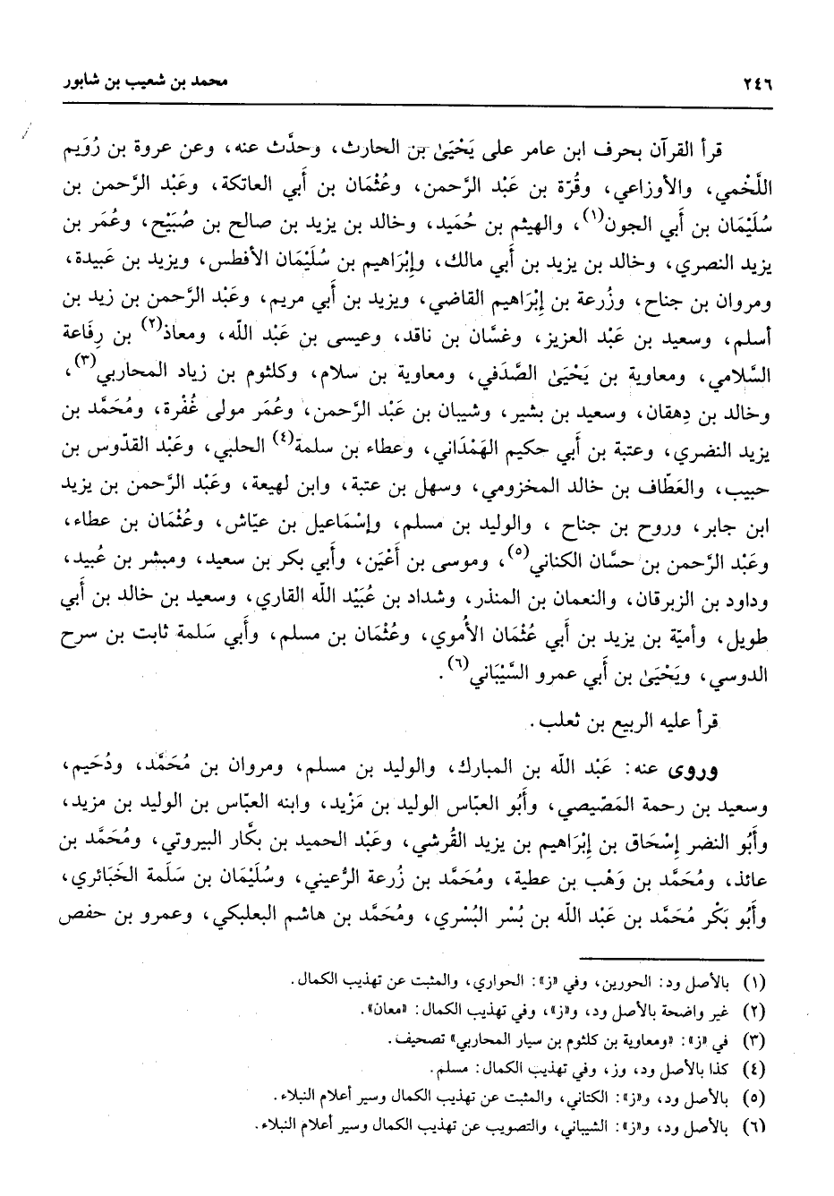 (6) بالاصل ود و " ز ": الشيباني والتصويب عن تهذيب الكمال وسير أعلام النبلاء