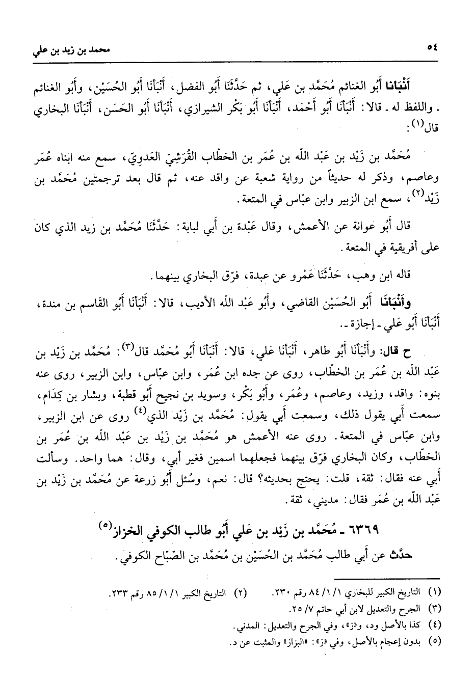 6369 - محمد بن زيد بن علي أبو طالب الكوفي الخزاز (5) حدث عن أبي طالب محمد بن الحسين بن محمد بن الصباح الكوفي