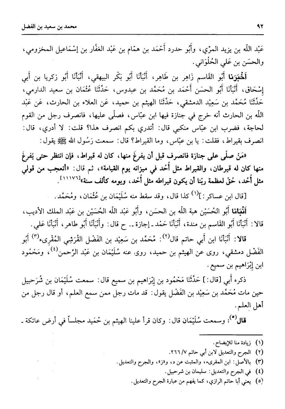 (5) يعني أبا حاتم الرازي كما يفهم من عبارة الجرح والتعديل