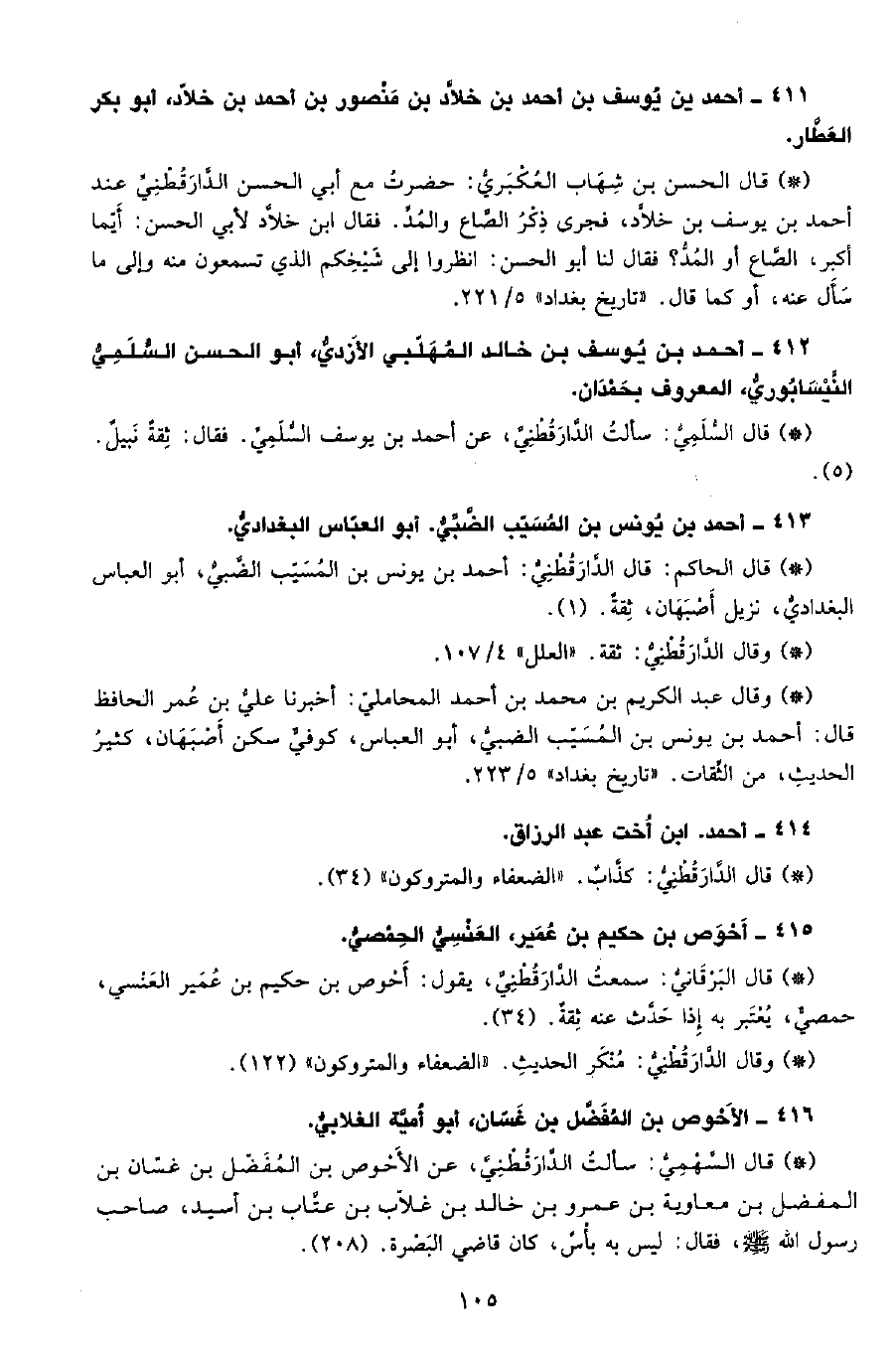 • قال السلمي: سألت الدَّارَقُطْنِيّ، عن أحمد بن يوسف السلمي، فقال: ثقة نبيل. (5) .