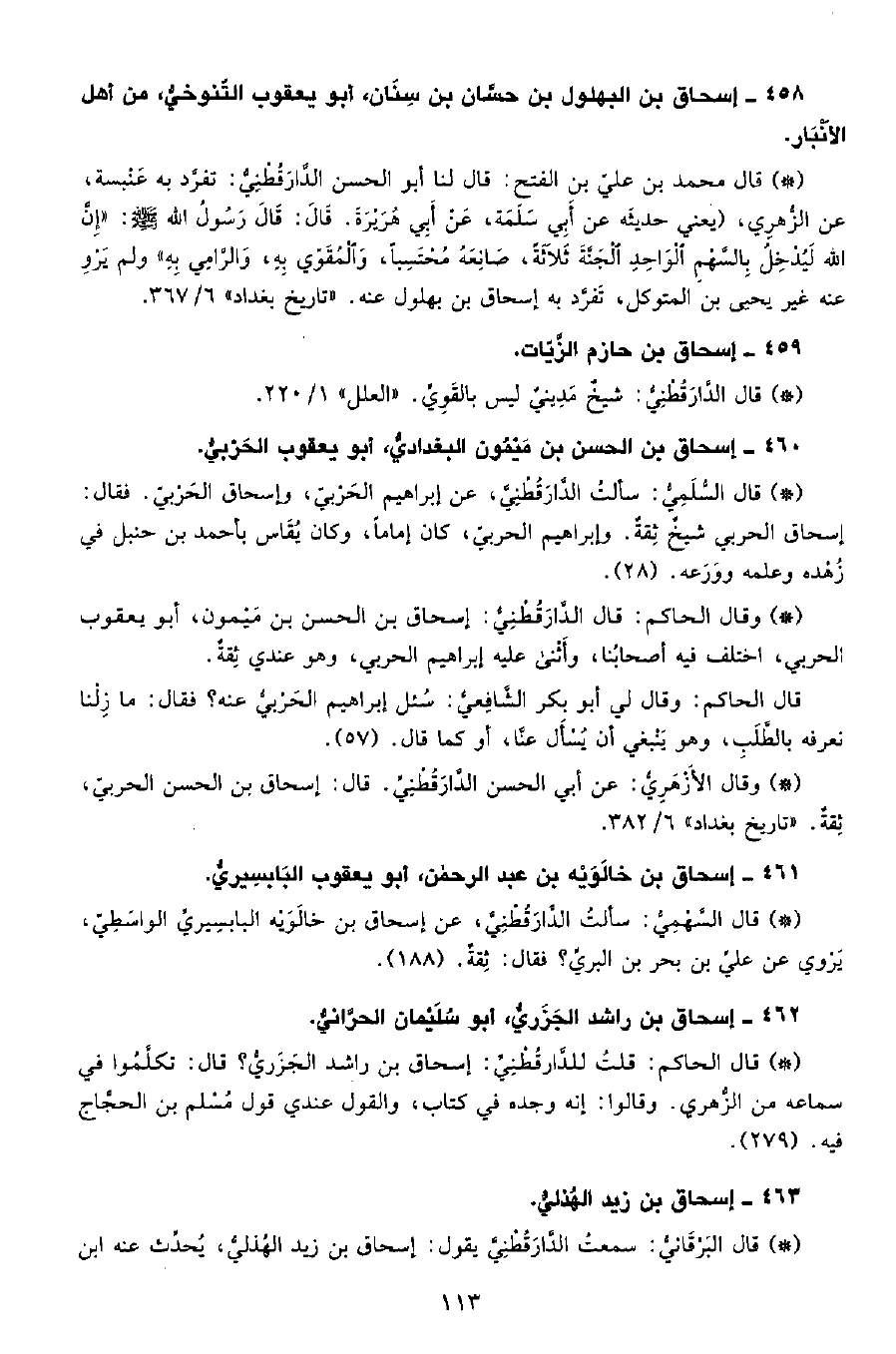 458 - إسحاق بن البهلول بن حسان بن سنان، أبو يعقوب التنوخي، من أهل الأنبار.