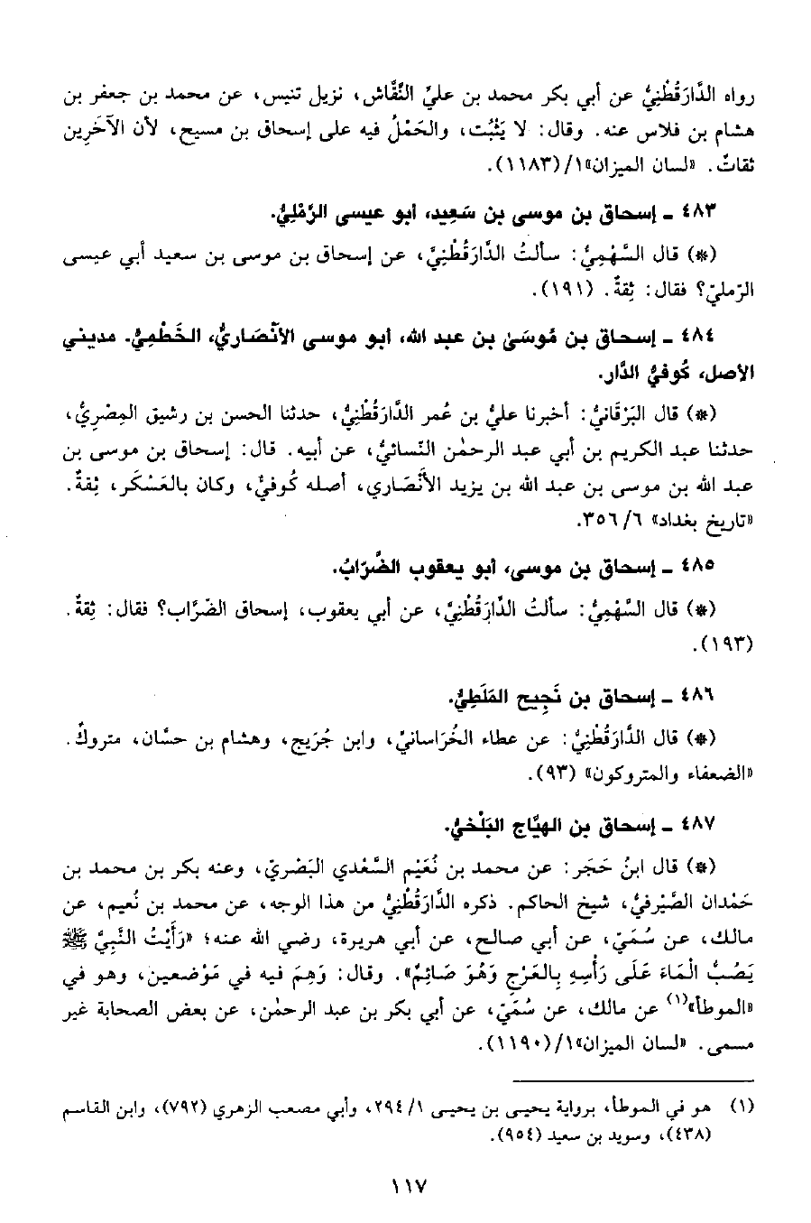 • قال السهمي: سألت الدَّارَقُطْنِيّ، عن إسحاق بن موسى بن سعيد أبي عيسى الرملي؟ فقال: ثقة. (191) .