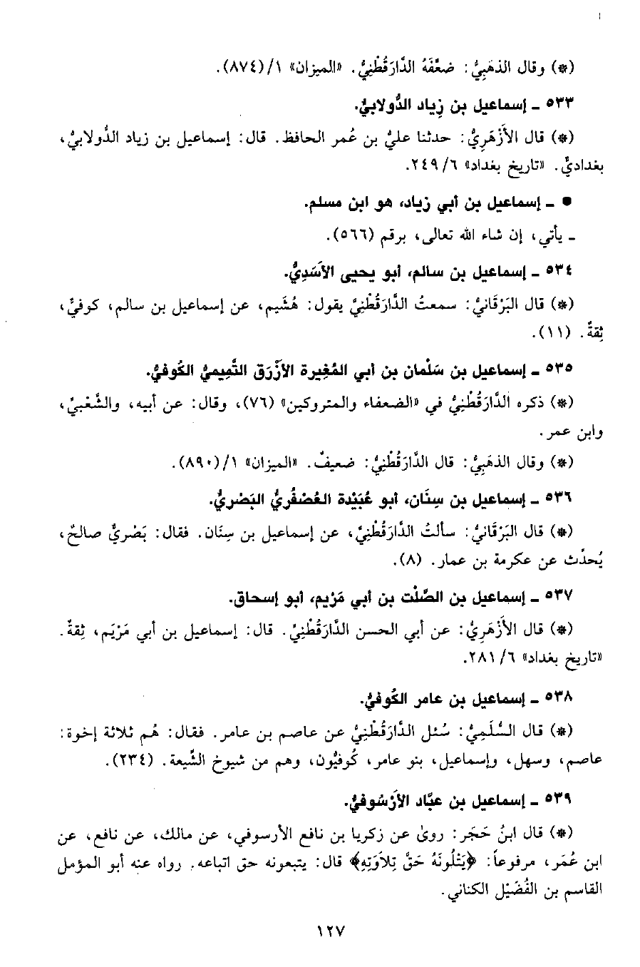 • قال الأزهري: حدثنا على بن عمر الحافظ، قال إسماعيل بن زياد الدولابي، بغدادي. «تاريخ بغداد» 6 249.