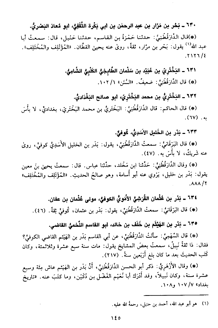 • وقال الأزهري: ذكر أبو الحسن الدَّارَقُطْنِيّ أن بدر بن الهيثم عاش مئة وسبع عشرة سنة، وكان نبيلاً، وقد أدرك أبا نعيم الفضل بن دكين، وما كتب عنه. «تاريخ بغداد» 7 107 و108.