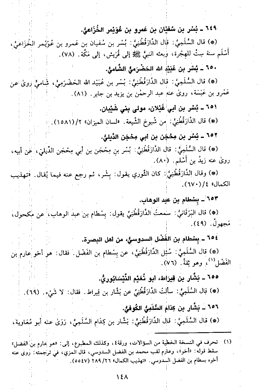 • قال السلمي: قال الدَّارَقُطْنِيّ: بشار بن كدام السلمي، روى عنه أبو معاوية،