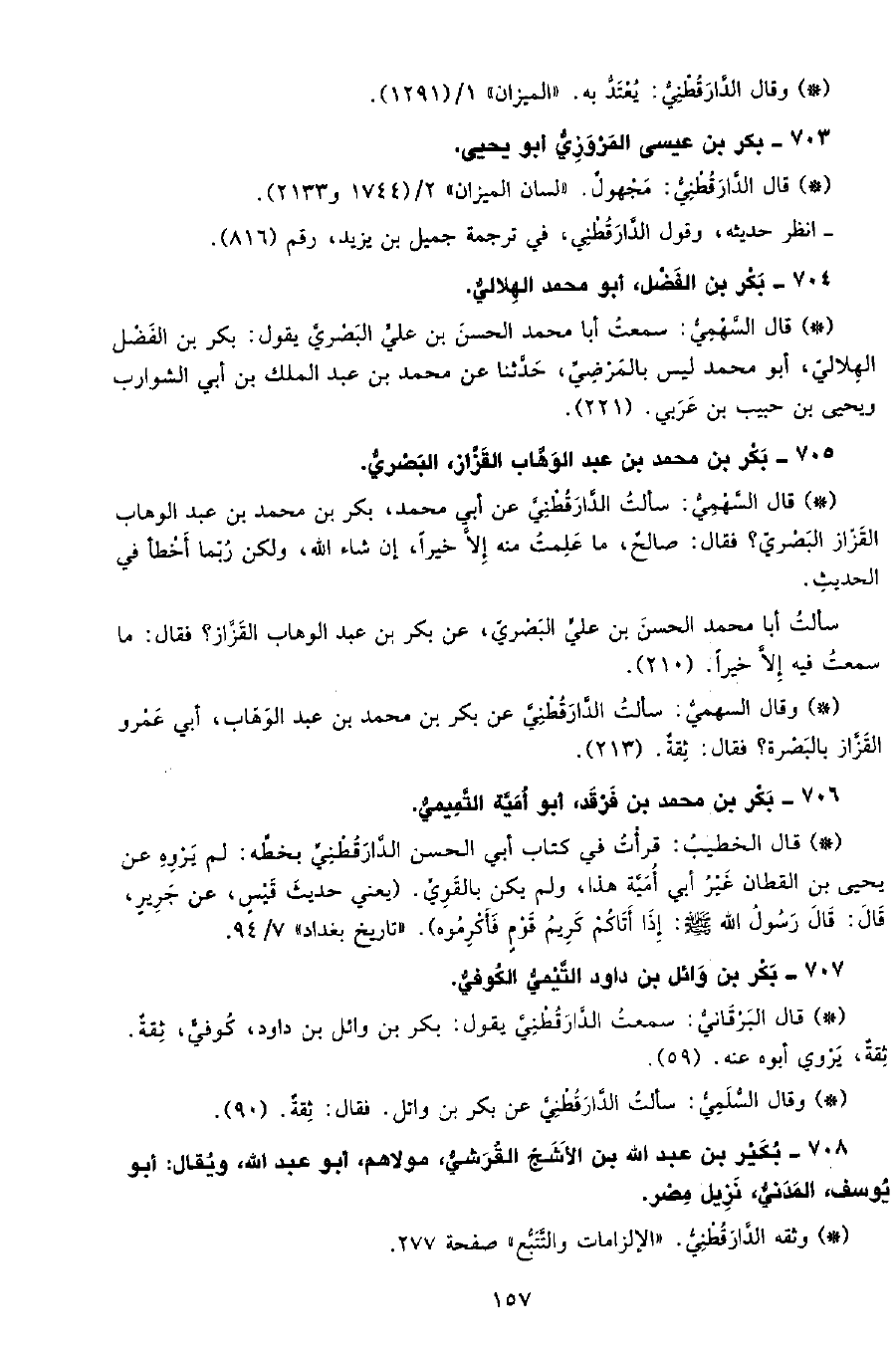 • وقال السهمي: سألت الدَّارَقُطْنِيّ عن بكر بن محمد بن عبد الوهاب، أبي عمرو القزاز بالبصرة؟ فقال: ثقة. (213) .