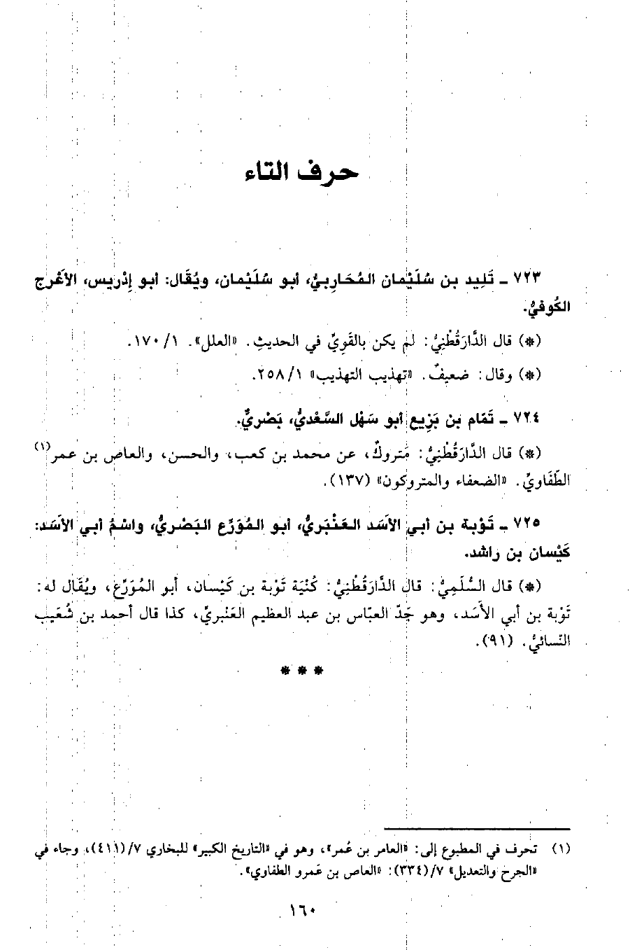 723 - تليد بن سليمان المحاربي، أبو سليمان، ويقال أبو إدريس، الأعرج الكوفي.